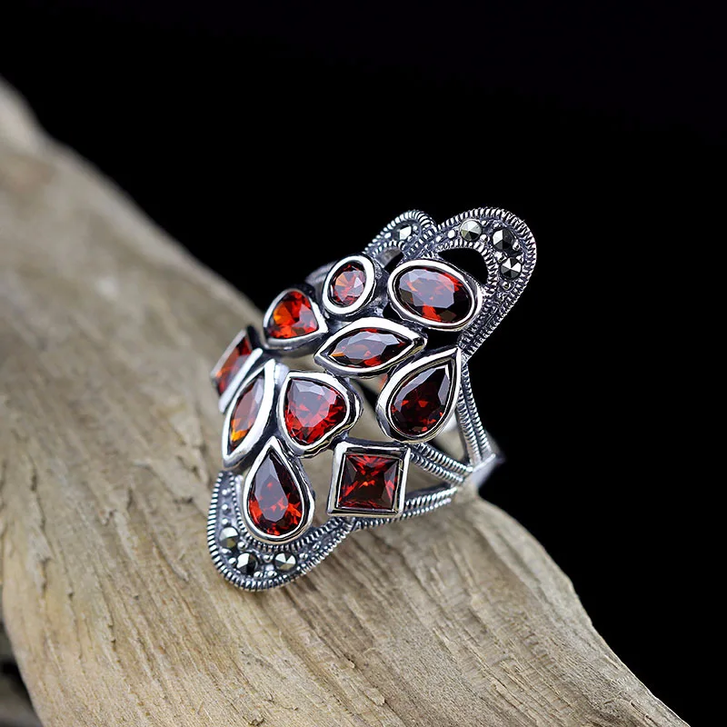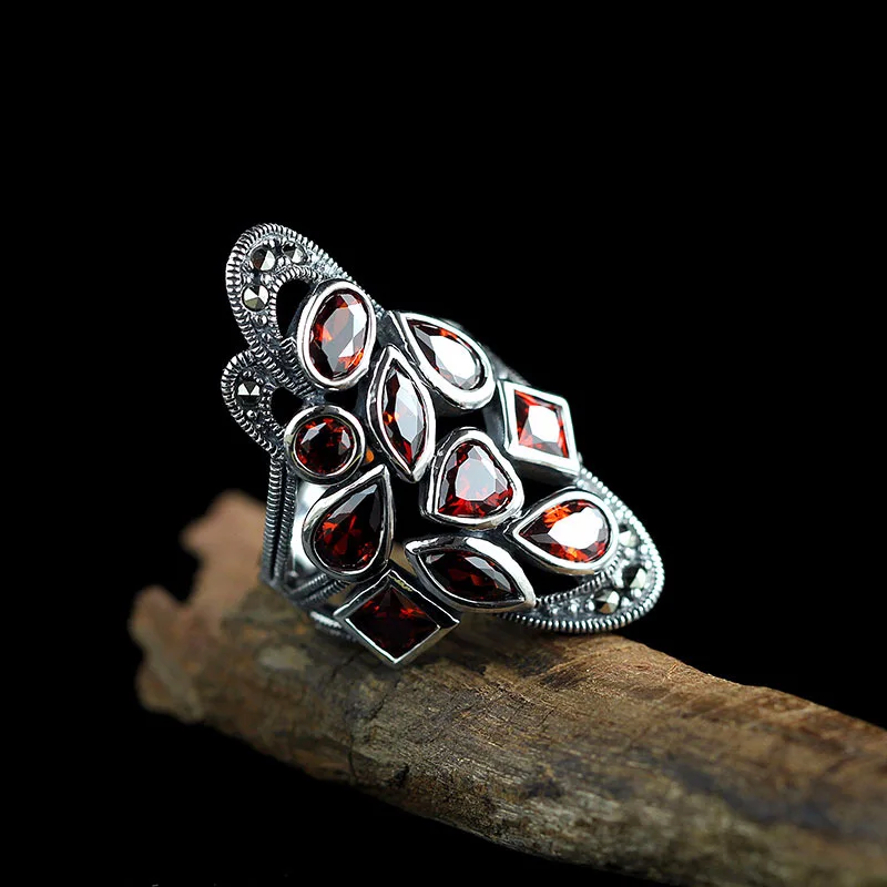 Индивидуальные Кольца Uglyless с гранатом для женщин, крупные широкие открытые модные кольца из настоящего серебра 925 пробы, модные ювелирные изделия