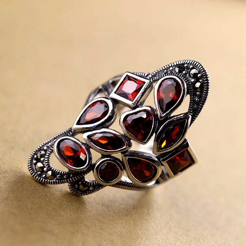 Uglyless Симпатичные гранатовые красные кольца для женщин экзотичес...
