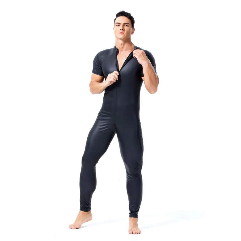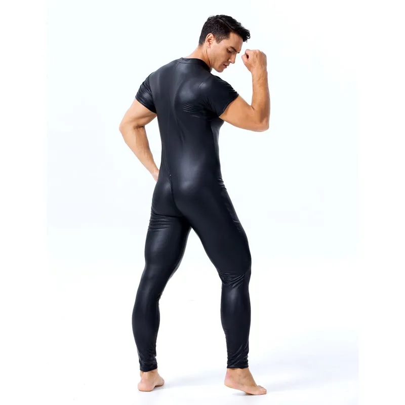 Комбинезон мужской из лакированной кожи, с коротким рукавом, двойно...