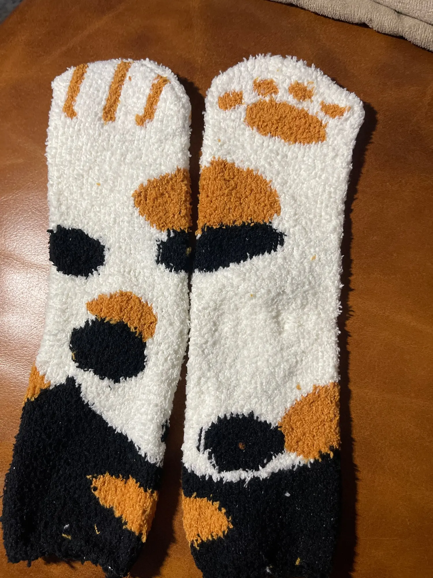 Новинка, шерстяные женские носки, утолщенные Теплые Носки с рисунком кота, лапы, 6 цветов, женские милые домашние носки для сна, носки для спальни, Harajuku Kawaii