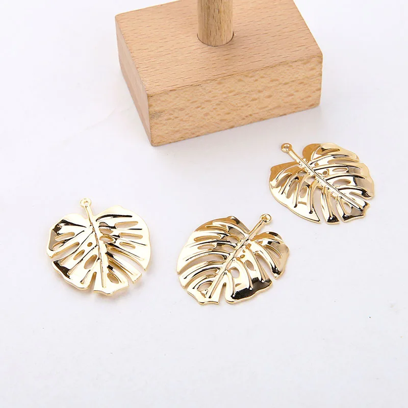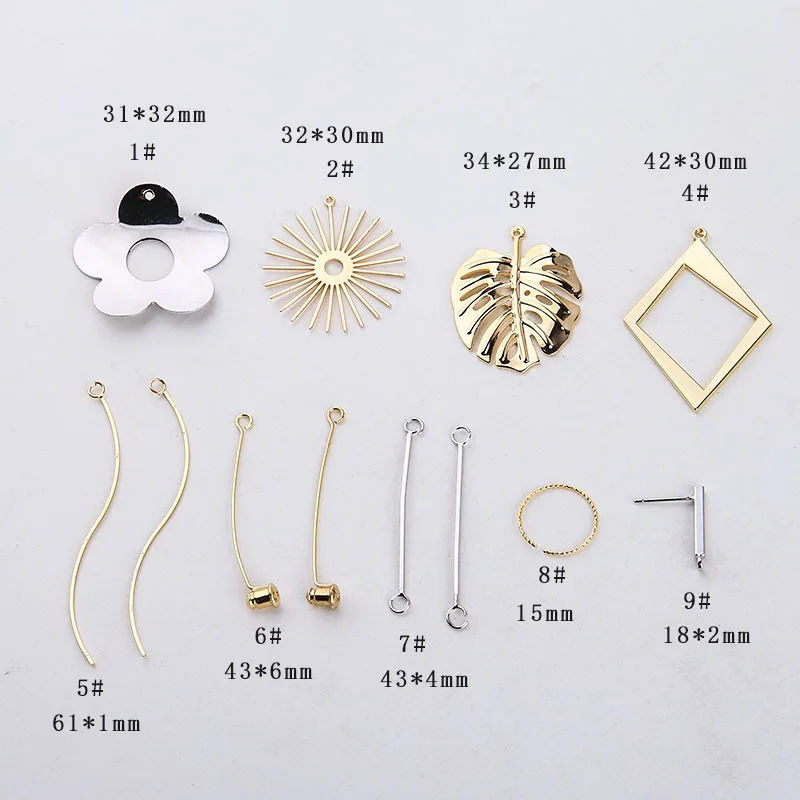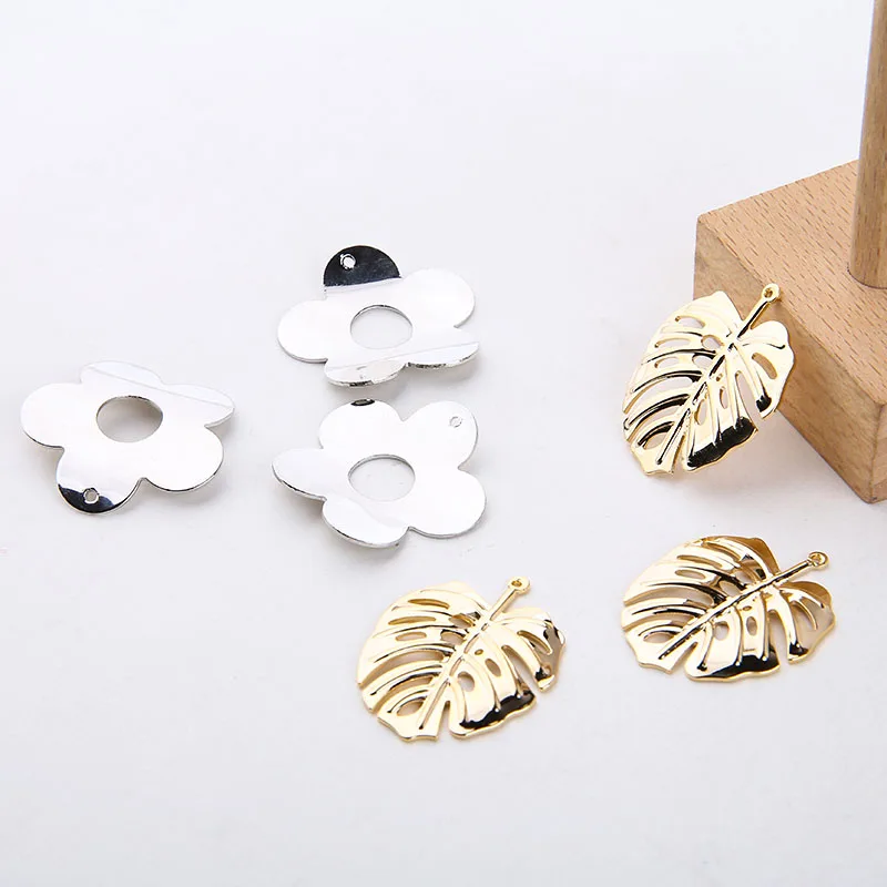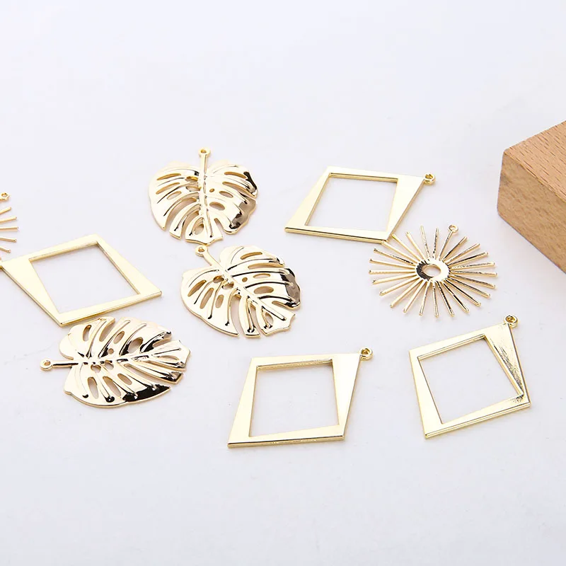 10 шт., Настоящее золото, гальваническое покрытие, листья, цветок, полые геометрические s-образные двойные висячие провода, кольцо, сделай сам, материал для ручных ушей