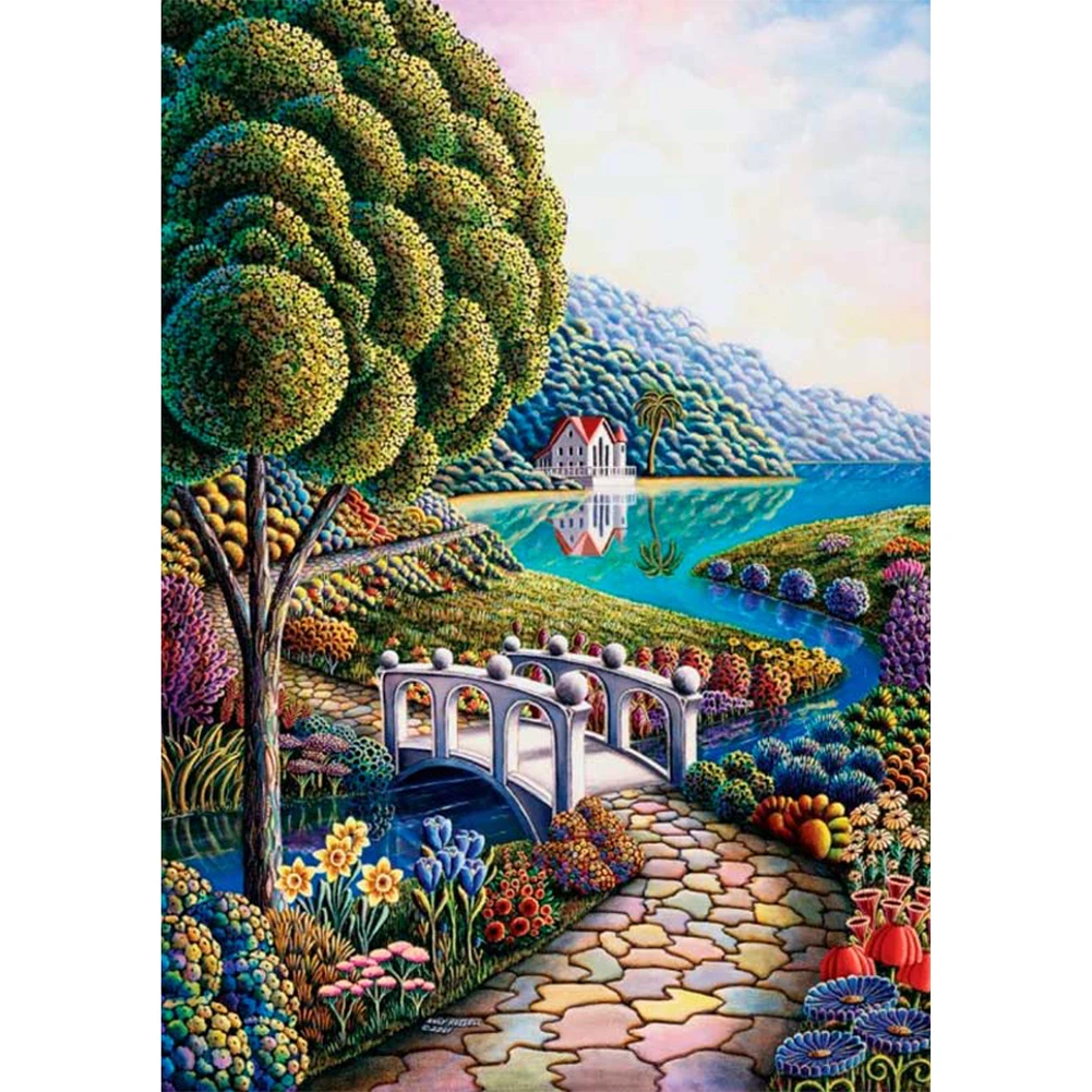 1 X картина с бриллиантами для рек и деревьев (стразы необходимо наклеить)1 комплект X алмазный инструмент для рисования (без рамки)