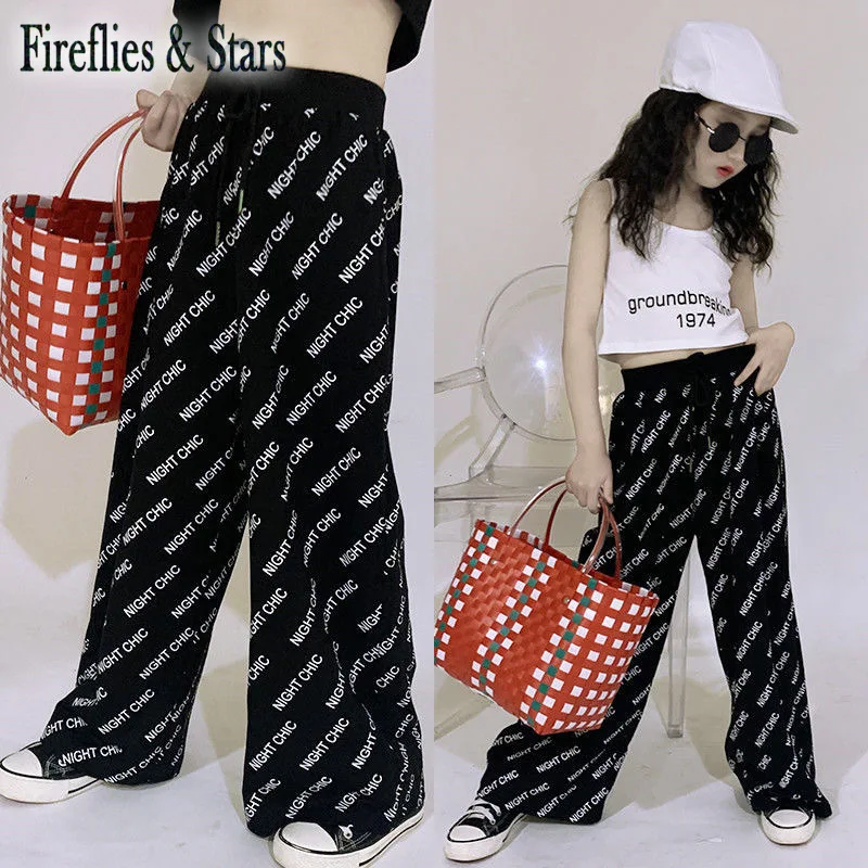 Название:Весенне-летние штаны для девочек; Детские широкие брюки; Детские брюки; Детская уличная повседневная одежда с буквенным принтом для детей от 4 до 14 лет