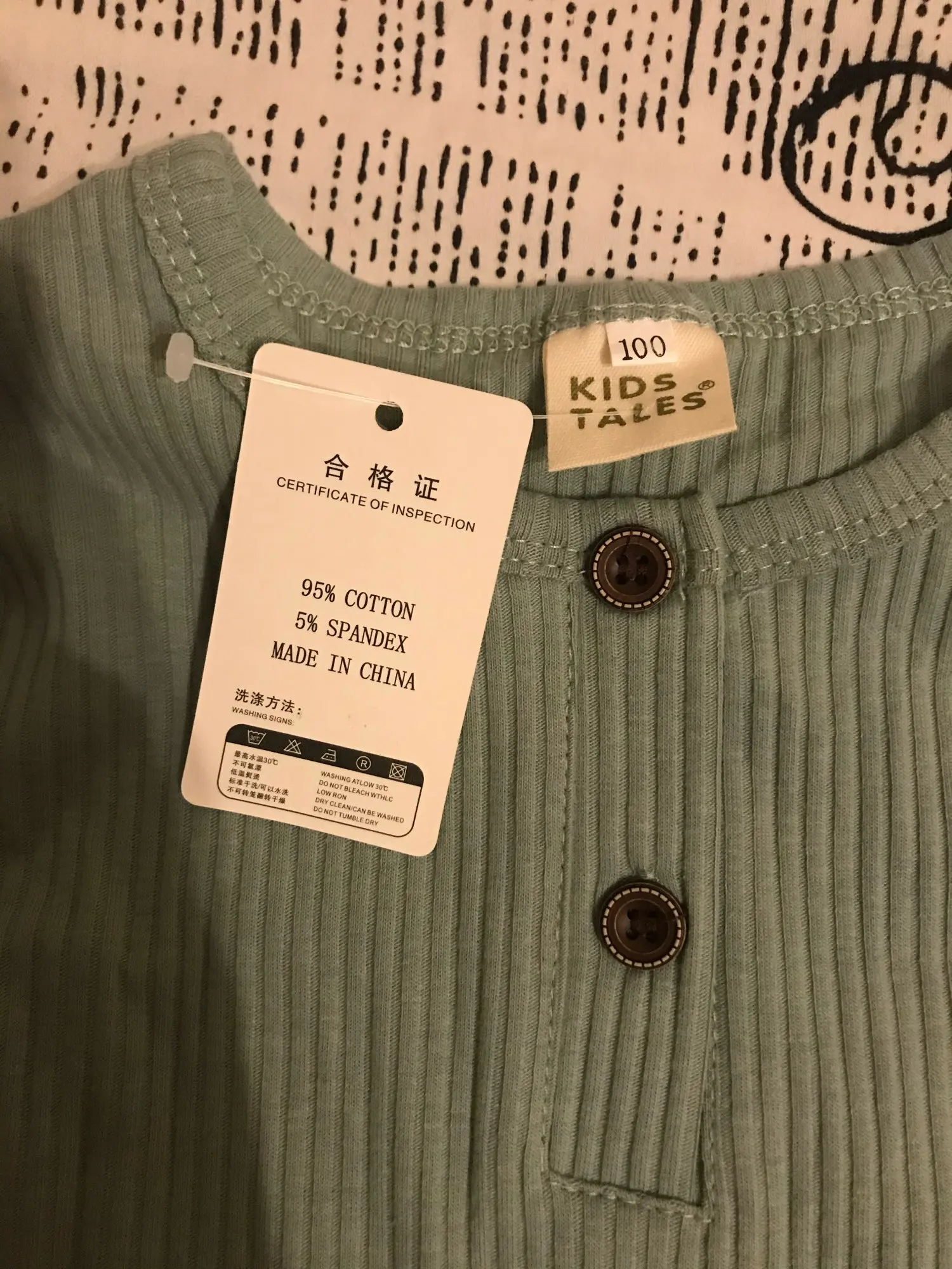 Качество: нитки не торчат, швы ровные, цвет равномерный, кнопки жестко застегиваются, пуговицы крепко пришиты, материал приятный к телу 95% хлопок. Упакован в фирменный пакет, бирки сохранены. Цвет: бледно-зеленый. Размер: брала 18М на бирке указано 100, на наш 86 р-р. Товар соответствует заявленному. Товар рекомендую. Спасибо Kids Tales JieRui Store Больше распаковок на моем телеграмм-канале: shkaf_deti/ Подписывайтесь! Спасибо Kids Tales JieRui Store