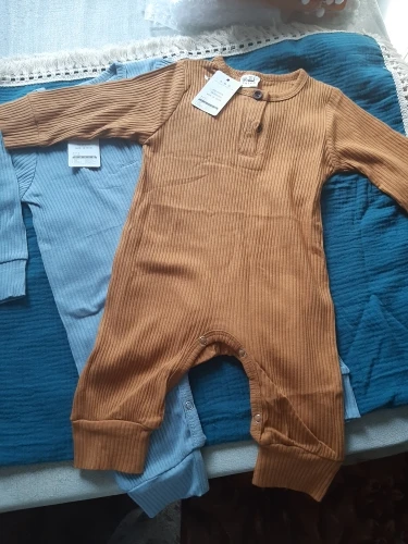 Очень понравился комбинезон, используем как домашнюю одежду, приятный материал (95% хлопок) и цвет. Но маломерка, на ребёнка год и 3 мес в самый раз, не знаю, сколько ещё поносим, застёгивается внизу уже прям плотно. После нескольких стирок все ок, не сел. Доставка 3 недели до СПб.