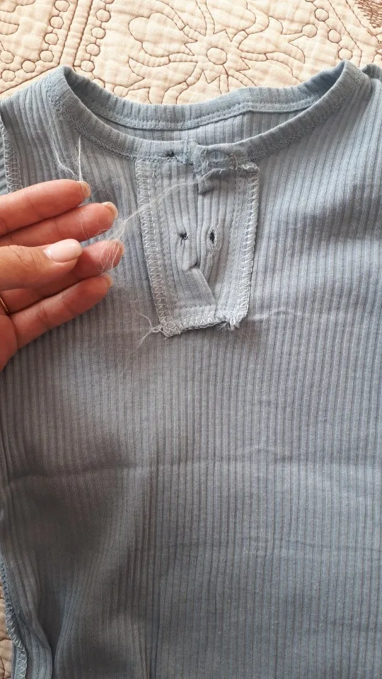 Качество хорошее, материал приятный к телу. Швы ровные, цвет как на фото, ниток торчащих нет, пуговицы пришиты хорошо. Размер брали 12м, подошёл на российский 80см. Товар соответствует описанию, рекомендую