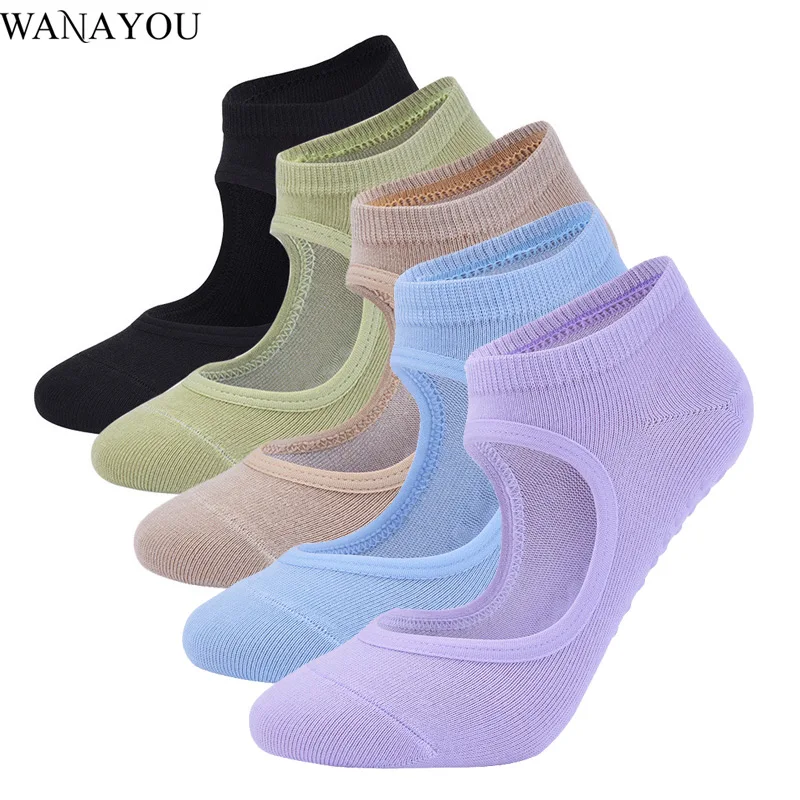 Женские быстросохнущие нескользящие носки для йоги WANAYOU, дышащие хлопковые носки с открытой спиной для пилатеса, балета, танцев, фитнеса, спортзала, спортивные носки