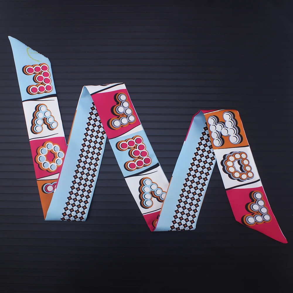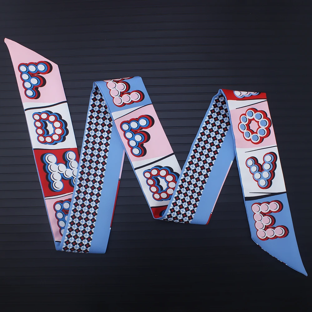 120 см * 5 см Шелковый маленький длинный женский шарф с бусинами и надписью Love, модная повязка на голову, сумка-лента для женщин, модные шарфы, нагрудник