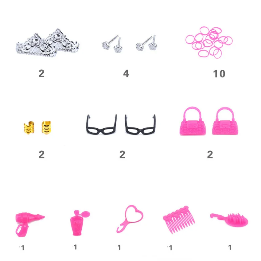 Аксессуары для кукол, 85 предметов = 75 шт., ожерелье с обувью коро...