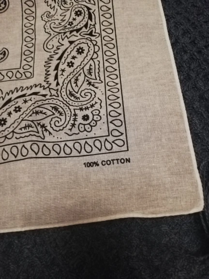 Пришла быстро в Ивановскую область. Вся бандана была в нитках, и не очень понравился текст "100% cotton" на углу, как не завернешь видно