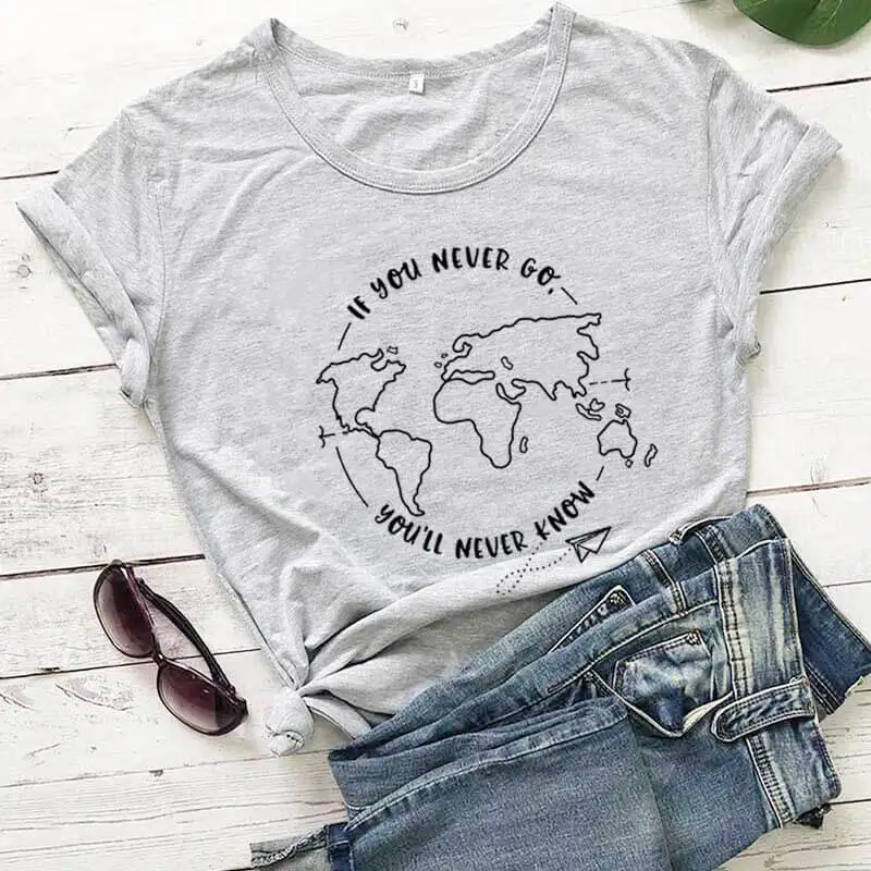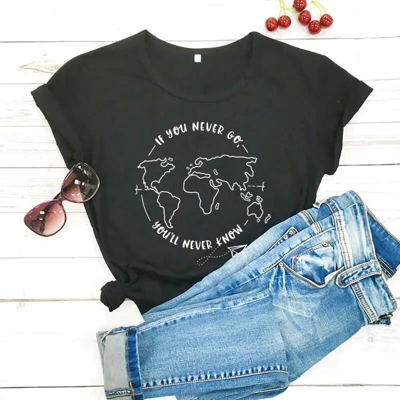 Забавная летняя футболка из 2020 хлопка, с надписью If You Never Go, You'll Never well, 100%, для отпуска, рубашки для путешествий
