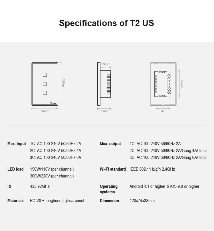 Настенный сенсорный выключатель Sonoff TX T2 T3, с поддержкой Wi-Fi, RF 433 APPсенсорное управление, 1 2 3 клавиши, для умного дома