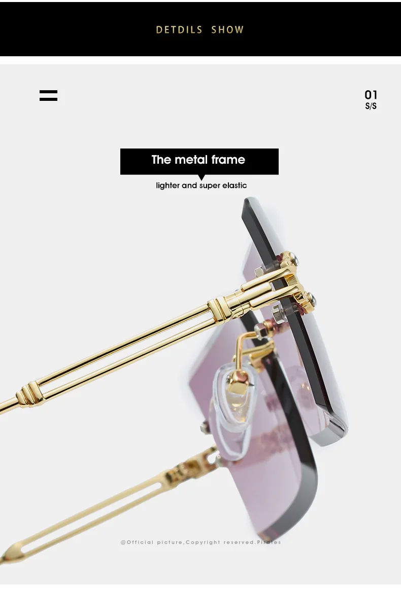 2021 летние солнцезащитные очки без оправы Квадратные Солнцезащитны...