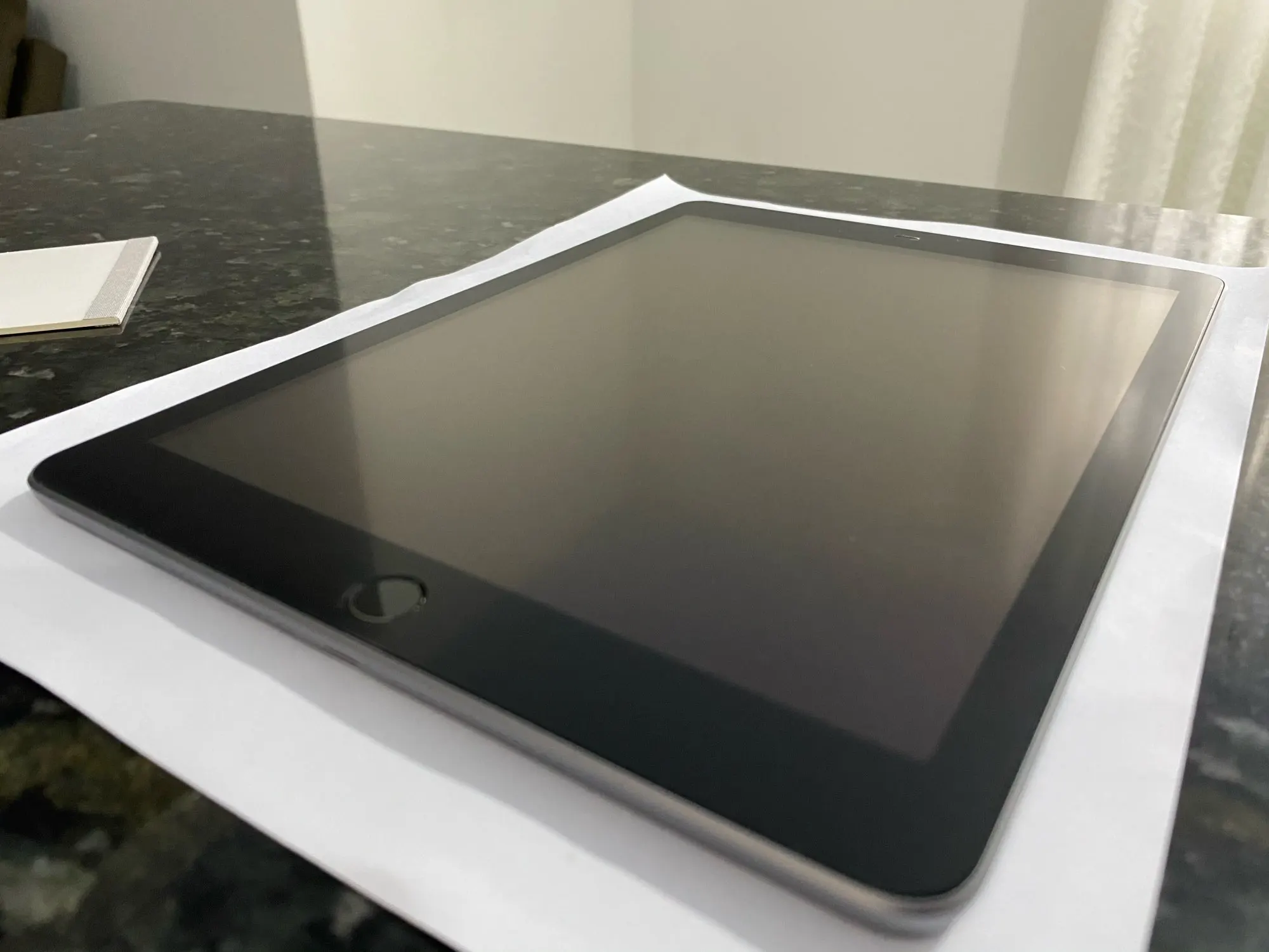 Llegó muy rápido a España, en 2 semanas. Es tal cual se describe y encaja en mi modelo iPad 10.2" 2020. Costó un poco ponerlo pero resultado sin burbujas. Muy cómodo para Apple pencil, sensación de papel real. No noto empeoramiento de la imagen como dicen otros comentarios. Muy contenta con el producto.