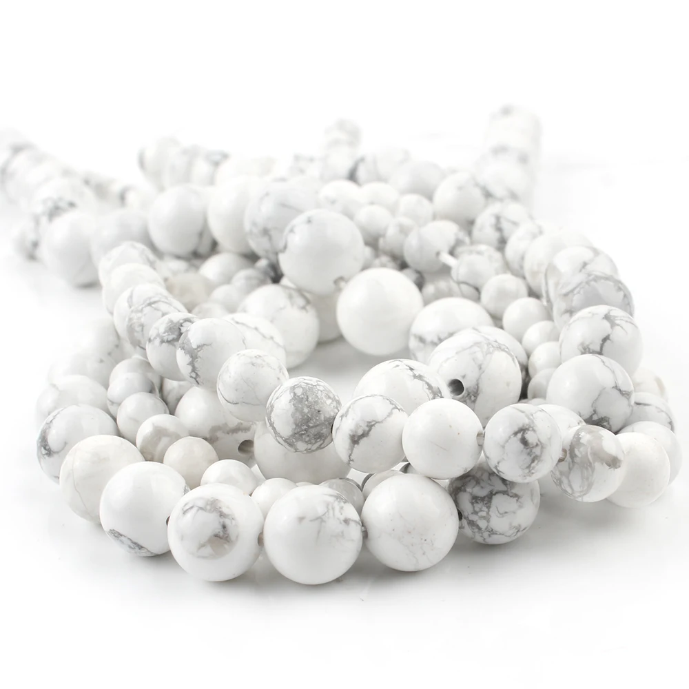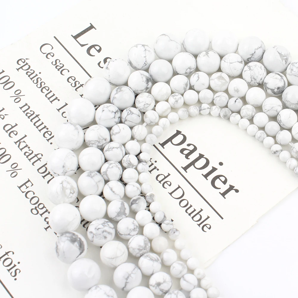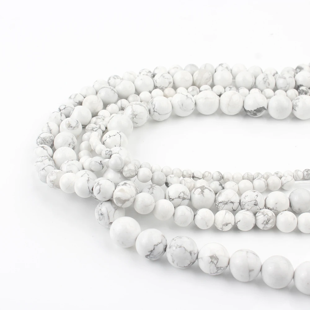 Оптовая продажа, натуральный белый бирюзовый говлит камень, круглые бусины с минералами, для самостоятельного изготовления ювелирных изделий, браслет 4, 6, 8, 10, 12 мм, 15 дюймов