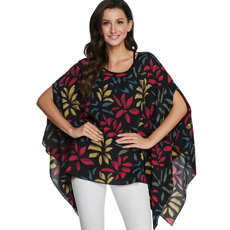 BHflutter размера плюс блузки женские рубашки 2020 цветочный принт летучая мышь повседневные шифоновые блуза; Рубашка; Кимоно летние топы