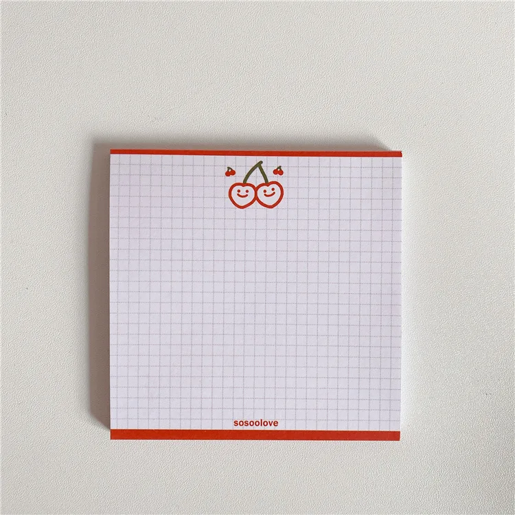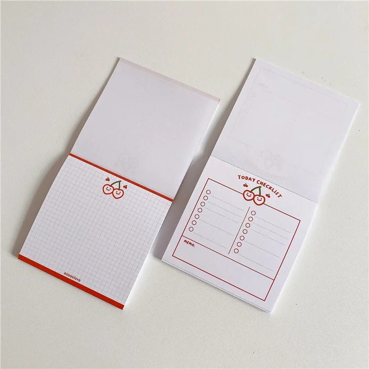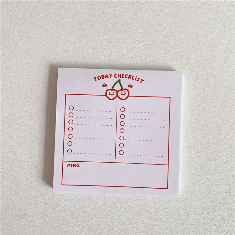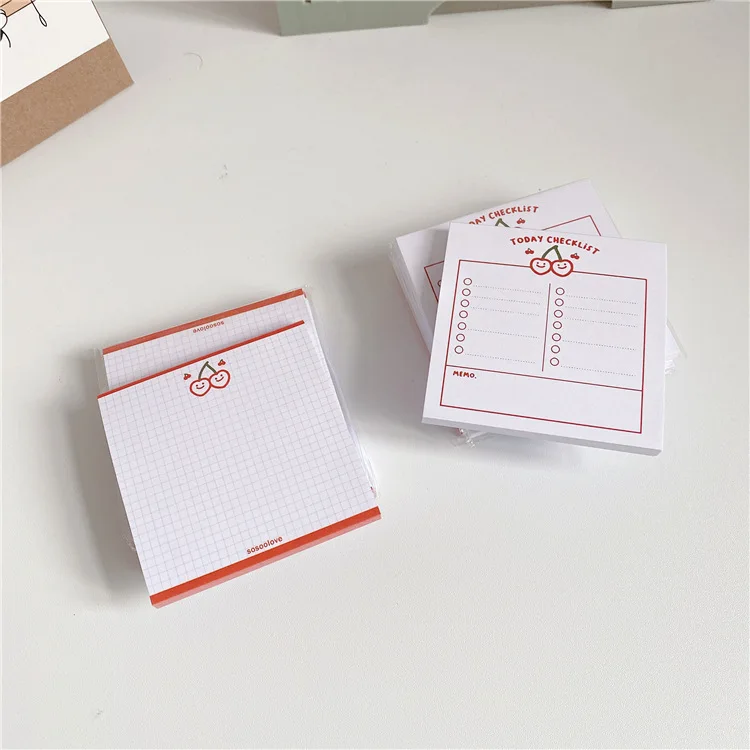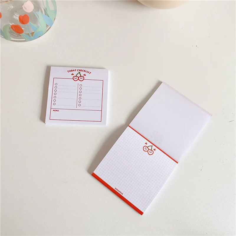 Блокнот для заметок с красными вишенками, 50 листов, кавайная простая бумага для заметок, планировщик, наклейки для списка дел, креативные школьные принадлежности, Канцтовары