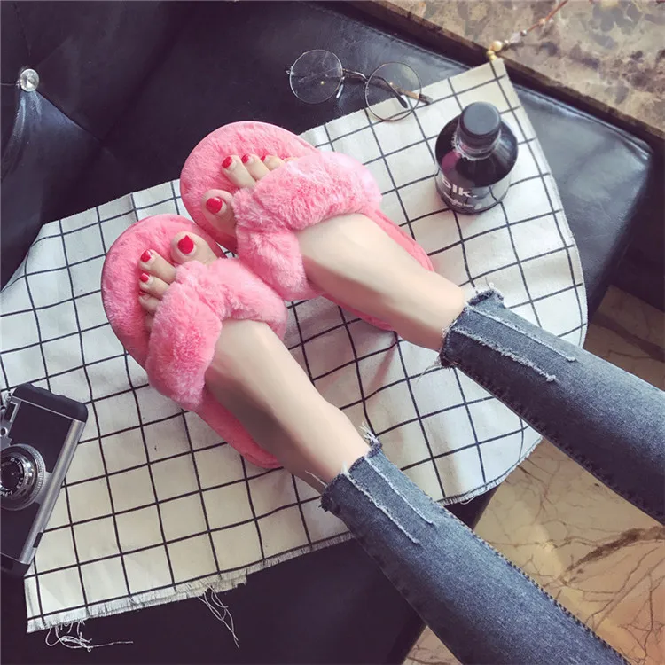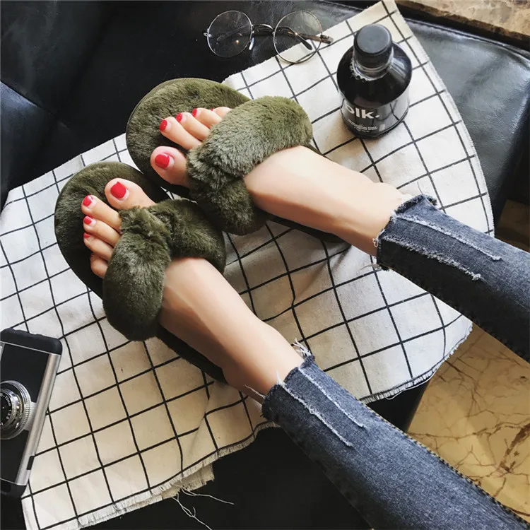 Шлепанцы COOTELILI женские домашние из искусственного меха, теплые меховые Сланцы на плоской подошве, без застежки, бежевые, большие размеры 36-41, зима