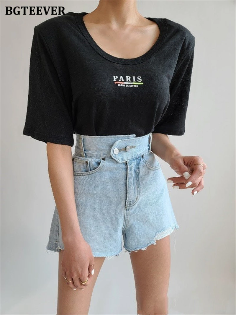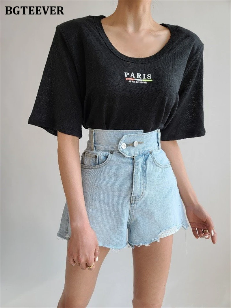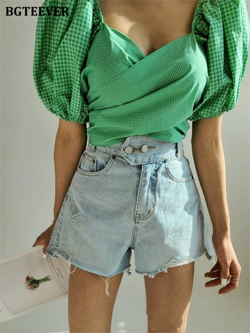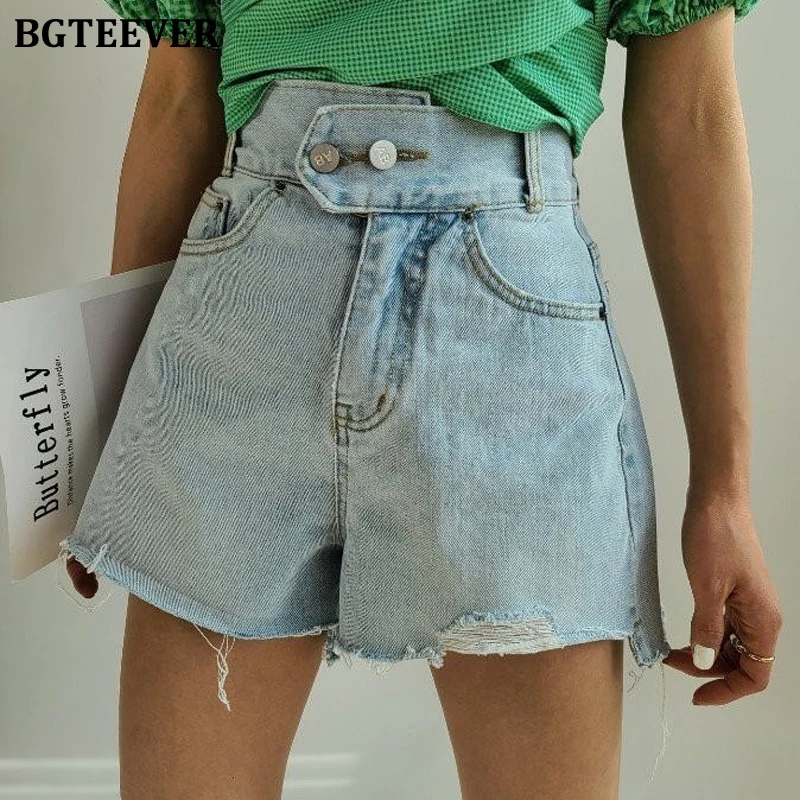 Женские джинсовые шорты BGTEEVER, с высокой талией и двойной пуговицей, летние шикарные женские джинсовые шорты с рваными краями, повседневные шорты, 2021