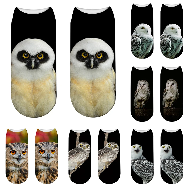 Носки женские короткие с забавными животными, Дышащие Короткие носки с 3D принтом милой совы, черные Series для девочек, подарок на лето