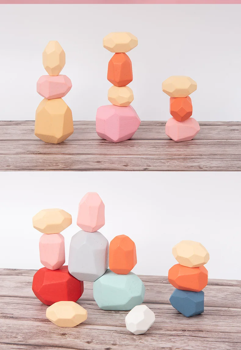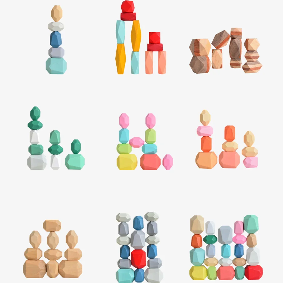 HX5D 10 шт. детский деревянный цветной камень, Штабелируемая игра, ...