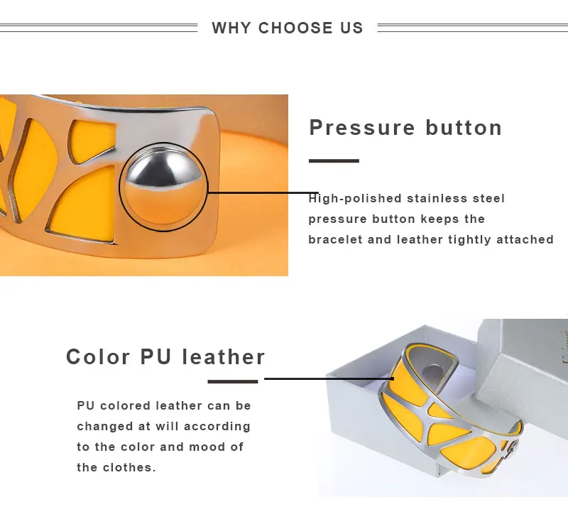 Женский Браслет-манжета из нержавеющей стали, со сменной кожей