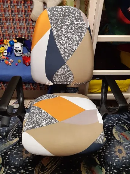 Нормальный чехол, ткань эластичная, умерено плотная, не просвечивает. На моё кресло немного маловат, очень в натяжку. Мне нужен чехол большего размер, размер моего кресла: сиденье 52х54см, ширина спинки 47см. Если у вас такое или больше, то не рекомендую, на спинку натянула с трудом). Если размер вашего кресла меньше, чем у меня - берите смело. Чехол смотрится очень даже неплохо. Доставка 3 нед.в Хаб.кр.