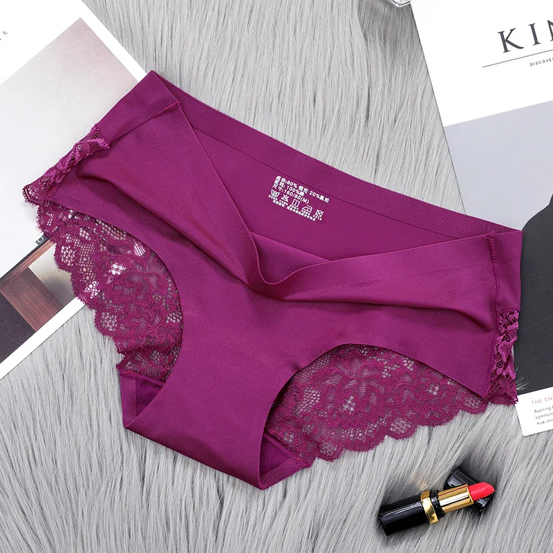 Женское кружевное нижнее белье, Бесшовные дышащие полые трусы, одноцветные женские нейлоновые трусы с низкой посадкой, сексуальное нижнее белье