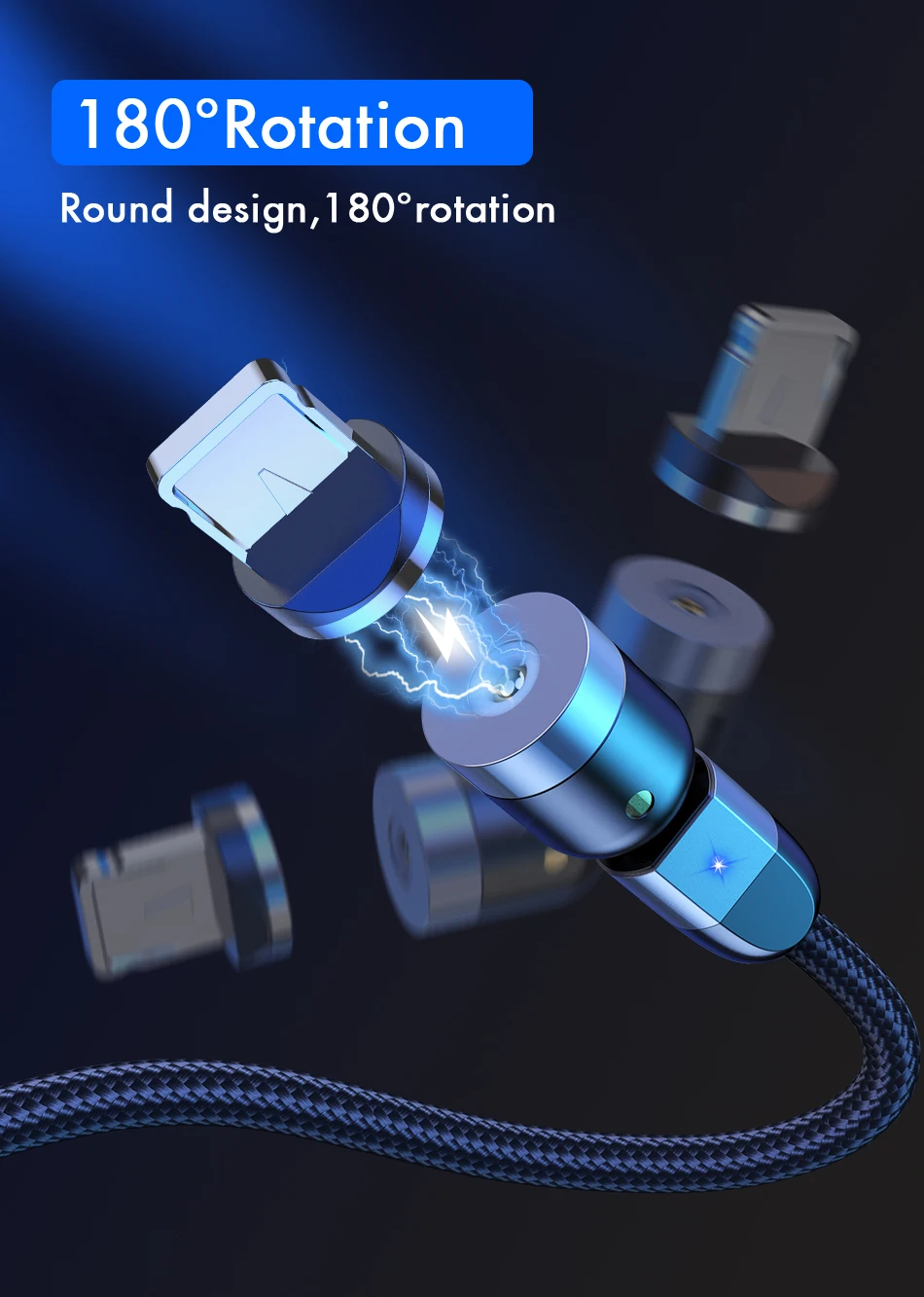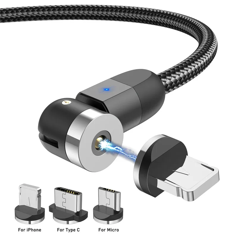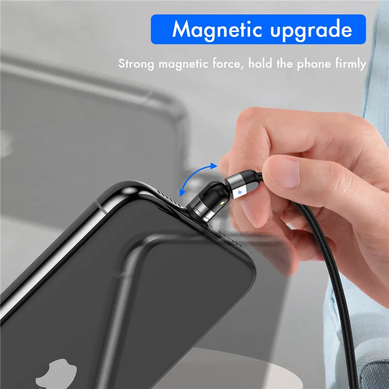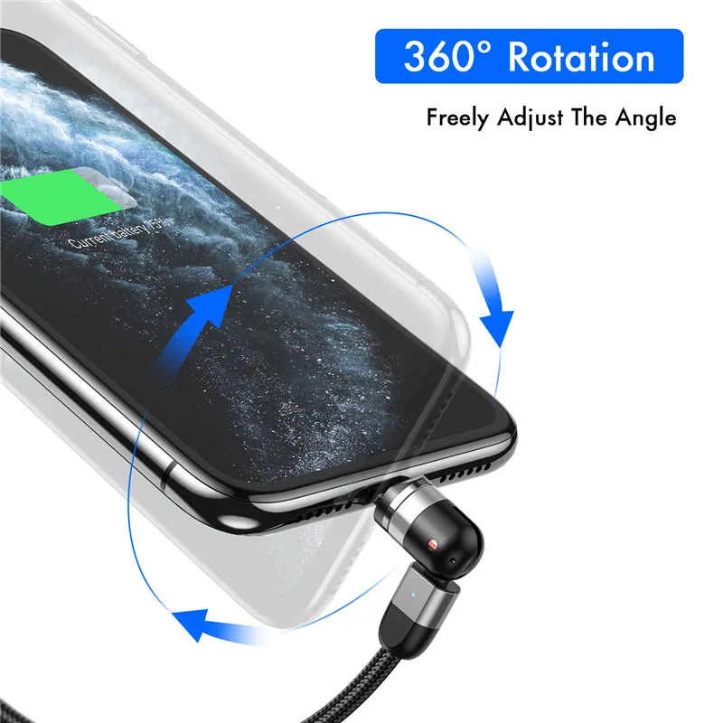 Магнитный кабель USLION Micro USB 540 с вращением типа зарядки C 2020 Новинка 3A Быстрая зарядка для iPhone 11 Pro XS Max Samsung Xiaomi