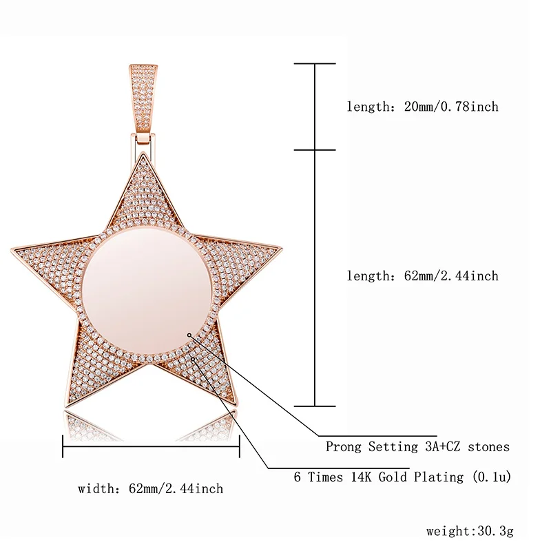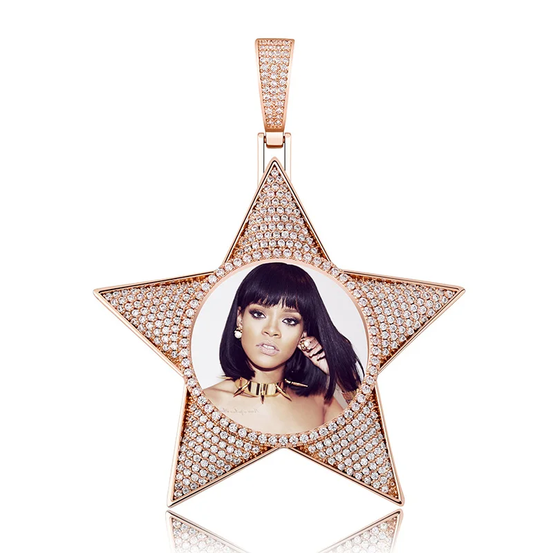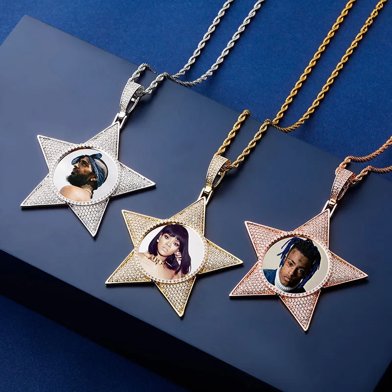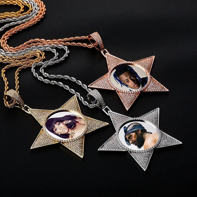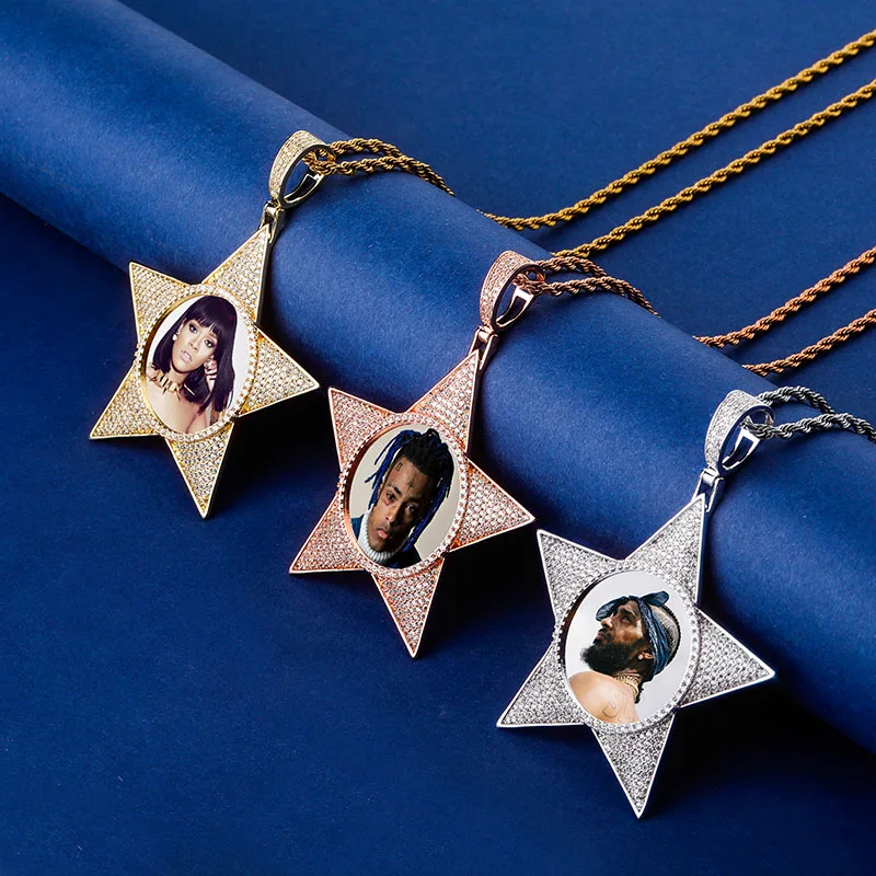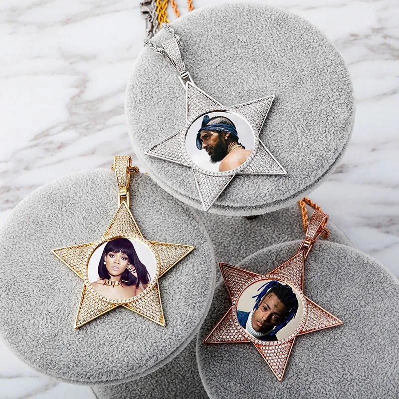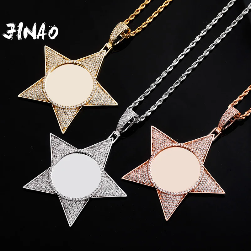 JINAO, новая подвеска в виде звезды, фотография, пентаграмма, медаль, циркониевый в виде льда кулон, Мужская хип-хоп мода ювелирные изделия