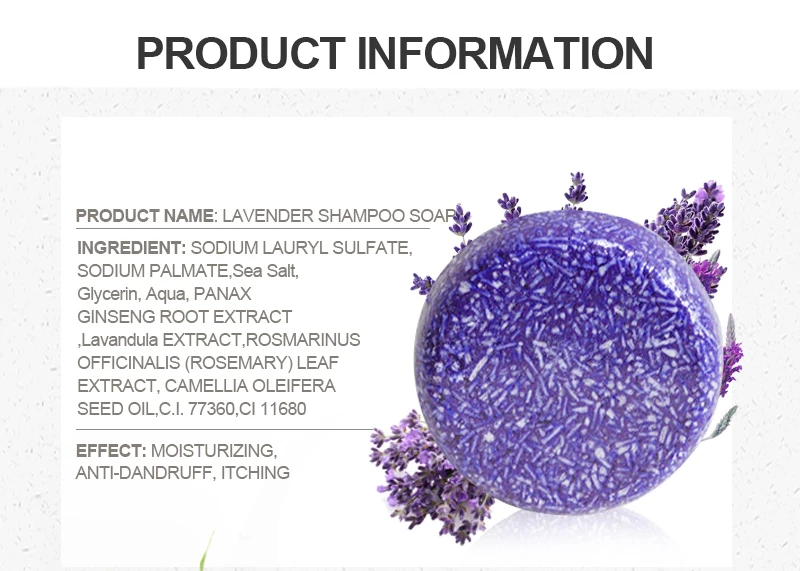 Вот в основном различные функции бара шампуня и бара кондиционера:Лавандовый шампунь: увлажнение, против перхоти, зудаШампунь с корицей: предотвращает выпадение волос, увлажнениеШампунь из морских водорослей: против перхоти и питанияИмбирный шампунь: помогает выращивать волосы, улучшает корень волосМятный шампунь: освежающий и контролирующий Экстра-маслоЖасминовый шампунь: делает волосы более гладкими и мягкимиШампунь из полигонума: увлажнение и восстановление поврежденных волос