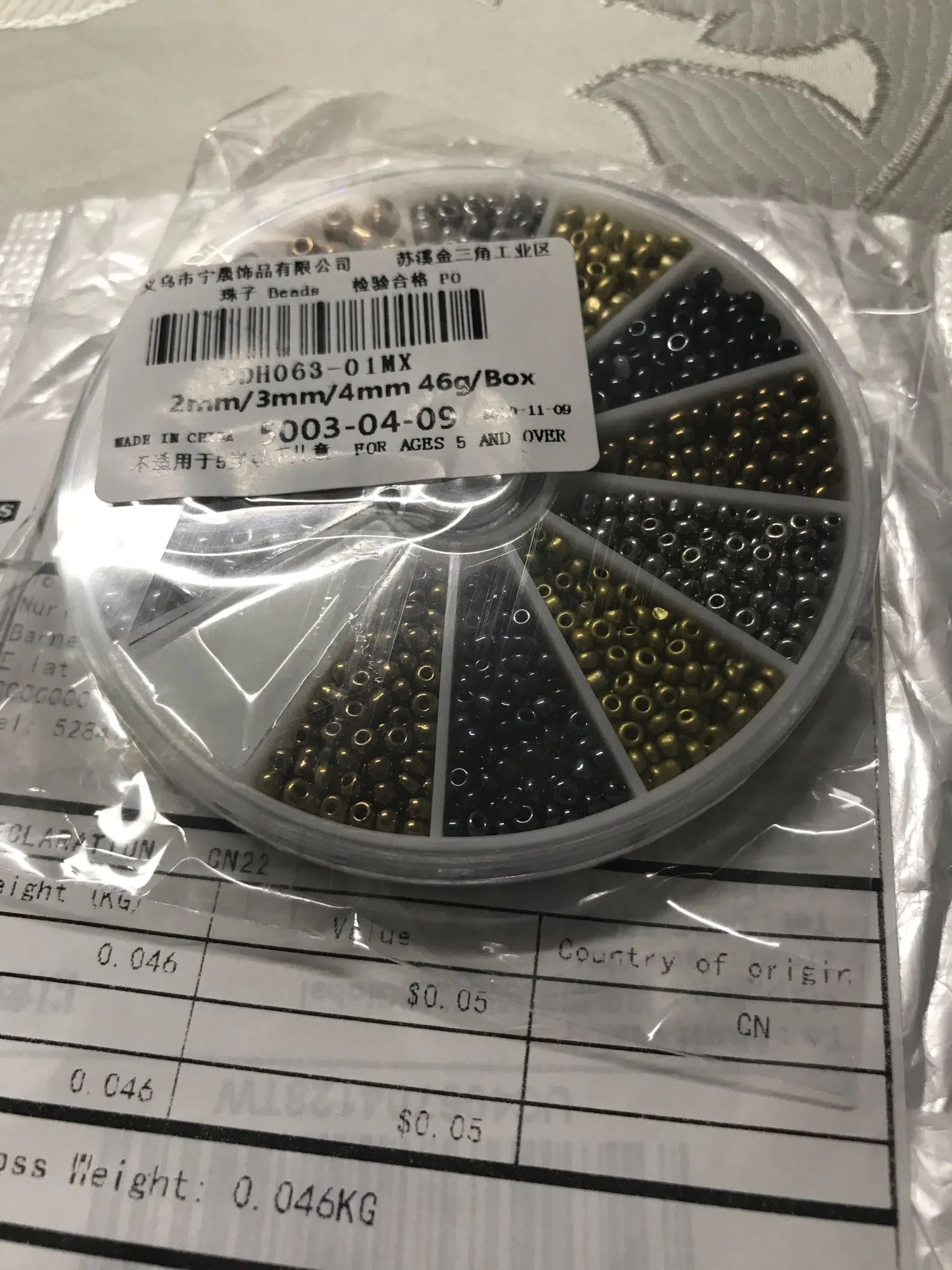 Заказала 12 ноября, в Украину. Пришло за 20 дней. Стоимостью меньше доллара. Упаковка внутри в пупырышка, всё целое. С продавцом не общались. Думала, конечно, что размер будет чуть-больше, но всем довольна. Бусины качественные, одной формы, не считала их, но должно быть около 1000 шт. Thanks for the quality product! Фото прикрепляю.