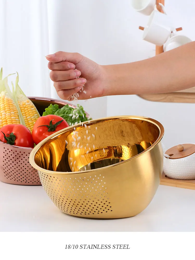 Ситечко для риса, 1 шт., ситечко из нержавеющей стали, розовое золото, сито цветная корзина, сушилка, кухонное приспособление