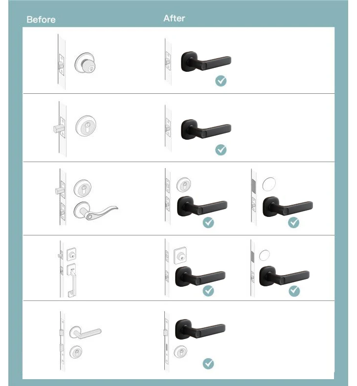 FIDO может поместиться 99% дверей, очень легко заменить старый замок. Проверьте совместимость вашей двери Следуйте фотографиям:
