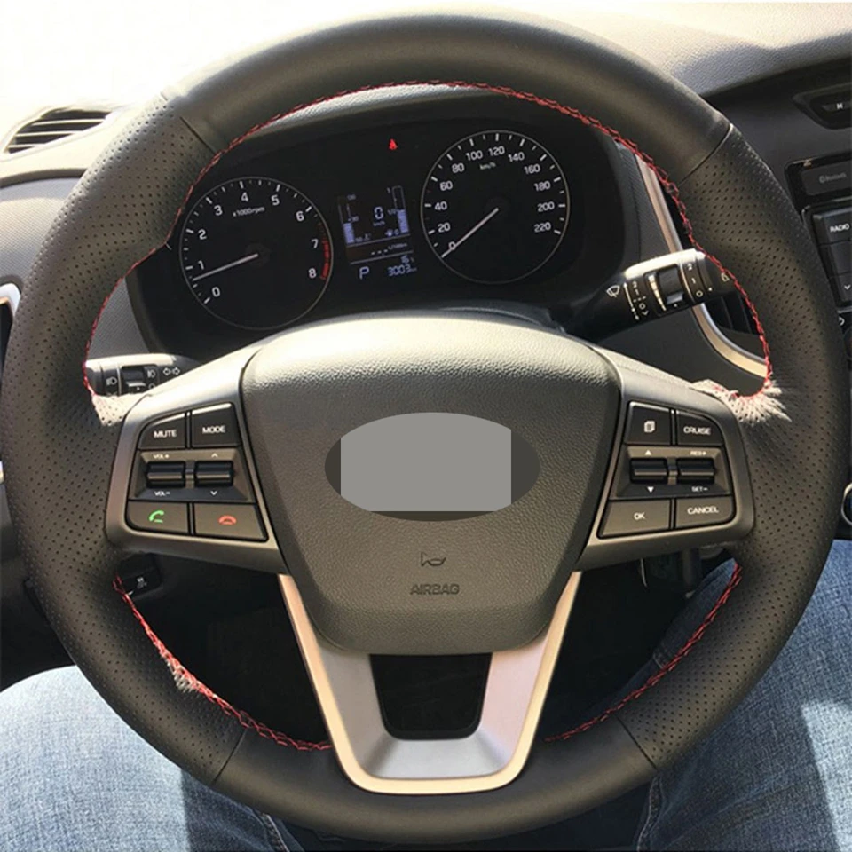 Сшитый вручную черный чехол рулевого колеса автомобиля из искусственной кожи для Hyundai Ix25 2014-2016 Creta 2016 2017