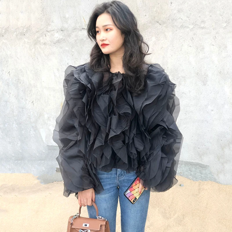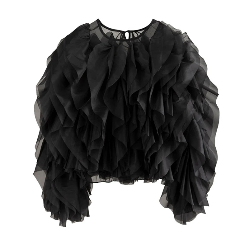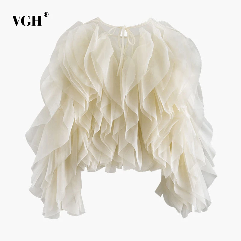 Женская шифоновая блузка с оборками VGH, элегантная Свободная рубашка с круглым вырезом и длинным рукавом-фонариком, летняя одежда, 2022