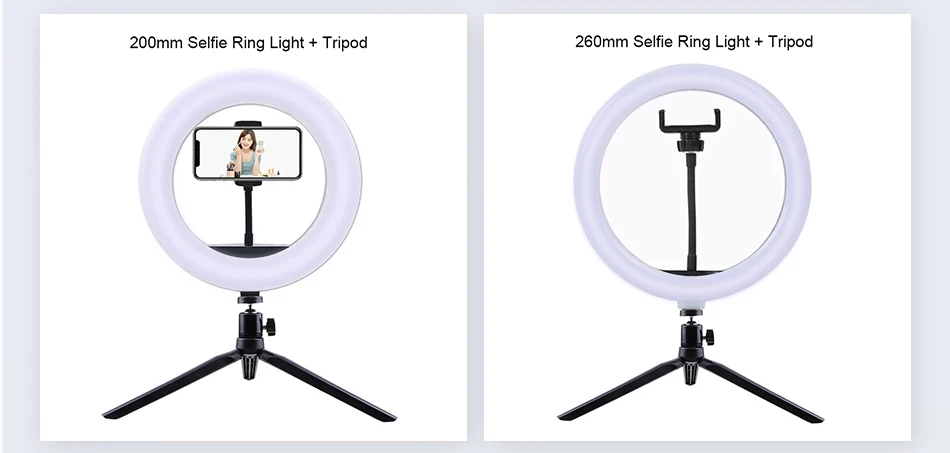 Кольцевой светодиодный светильник для селфи, лампа с дополнительным держателем для мобильного телефона, со штативом, для прямой трансляции видео