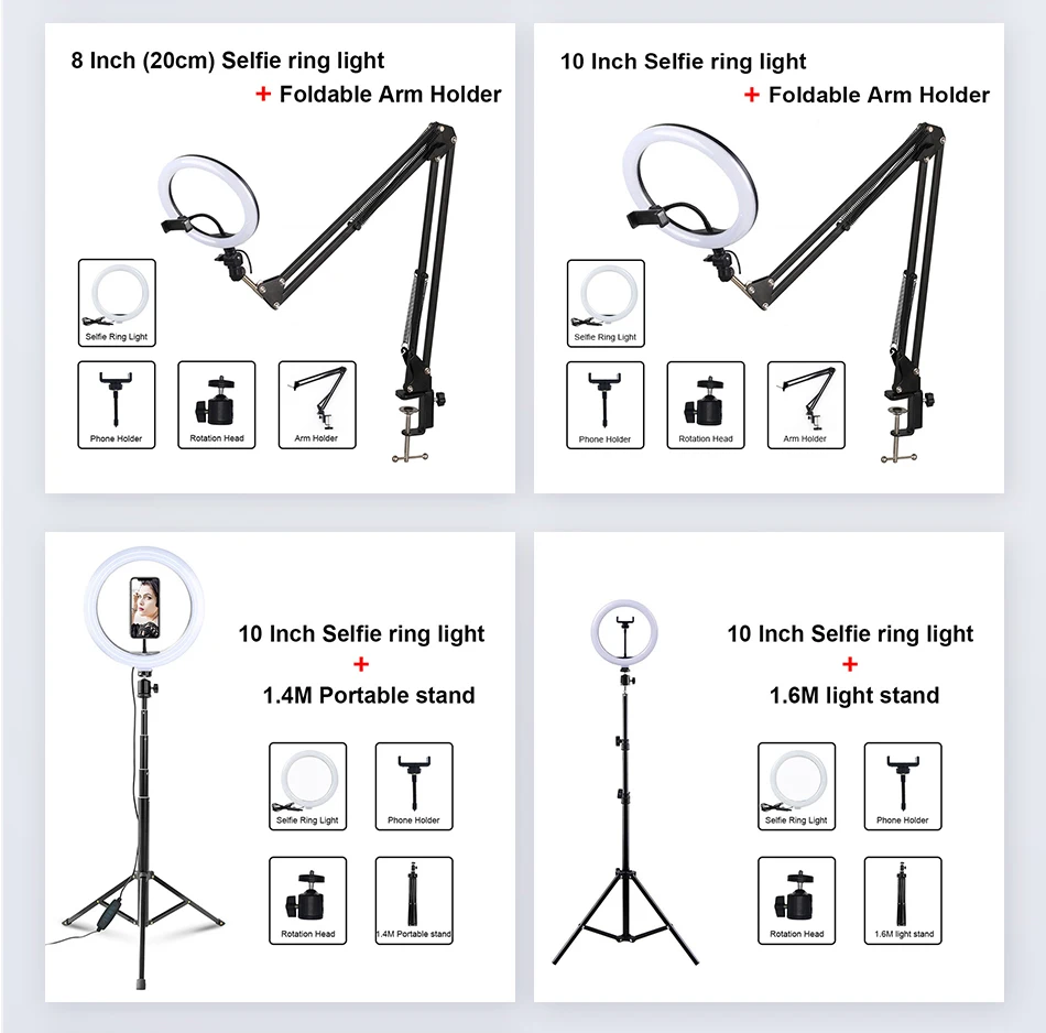 Красивый светодиодный кольцевой прожектор для фотосъемки. Продукт был хорошо защищен во время транспортировки, легко собирается, легкий и легкий в транспортировке. Он используется с usb-адаптером, либо зарядным устройством для смартфона или внешним аккумулятором для наружного использования на батарее! Три режима освещения: натуральный, теплый и белый! Также можно увеличить или уменьшить интенсивность света, зная, что телефон прикрепляется к центру света для отличного фото-и видеосъемки! Светодиодное кольцо крепится на винтовую резьбу, включенную в аксессуары, и это с стандартной винтовой резьбой для фотостудии! Доставка в Бельгия занимает 7 дней!