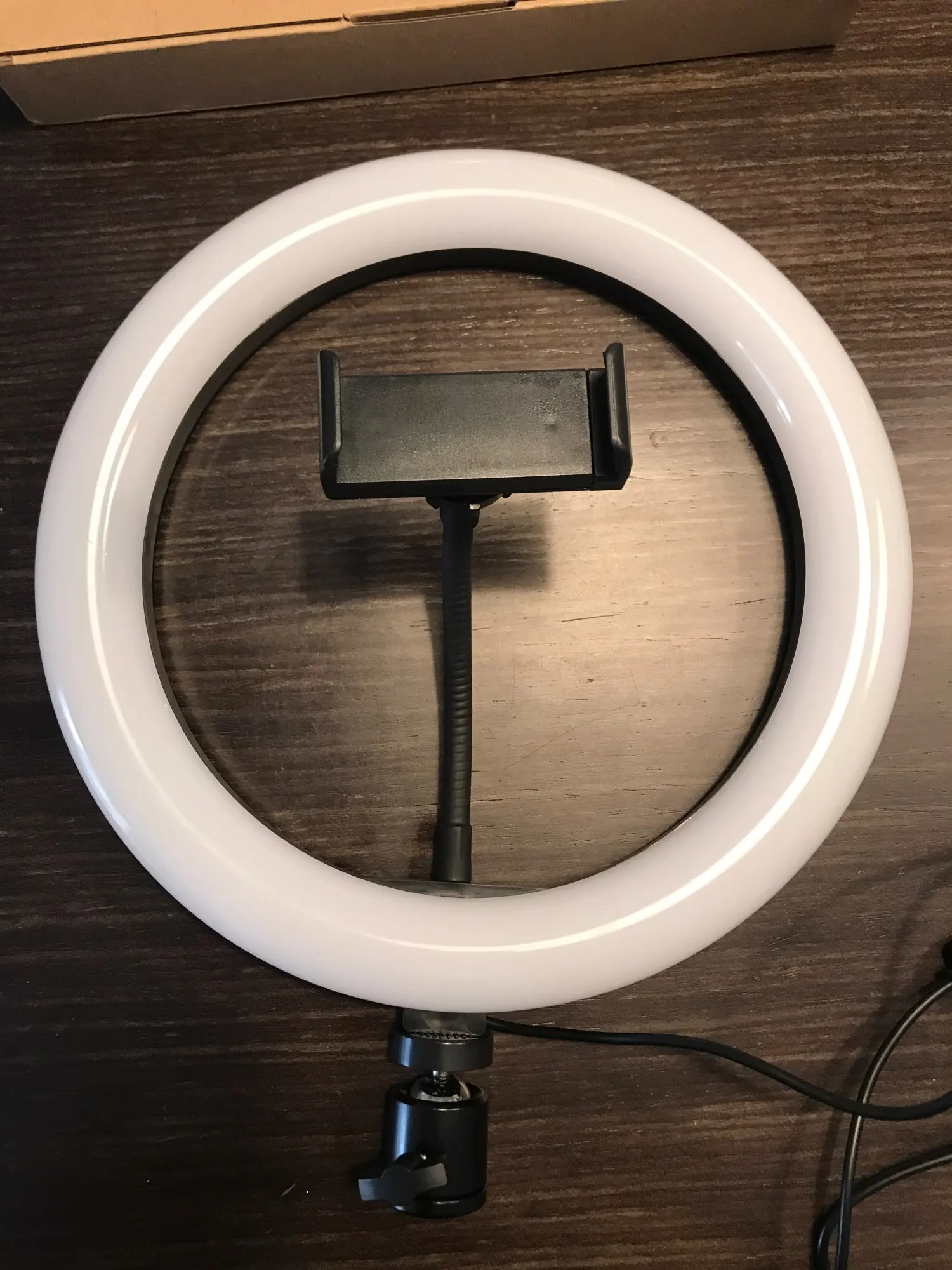 Не хватает жёсткости конструкции, само крепление телефона реализовано не очень (трудно поймать горизонт, да так что бы кольцо не было видно). Светит отлично, есть три режима цвета (белый, жёлтый и средний между белым и жёлтым) и (как я насчитал) 9 режимов яркости. Заказывал доставку plus, но даже с таким условием шло долго (месяц до Московской области).