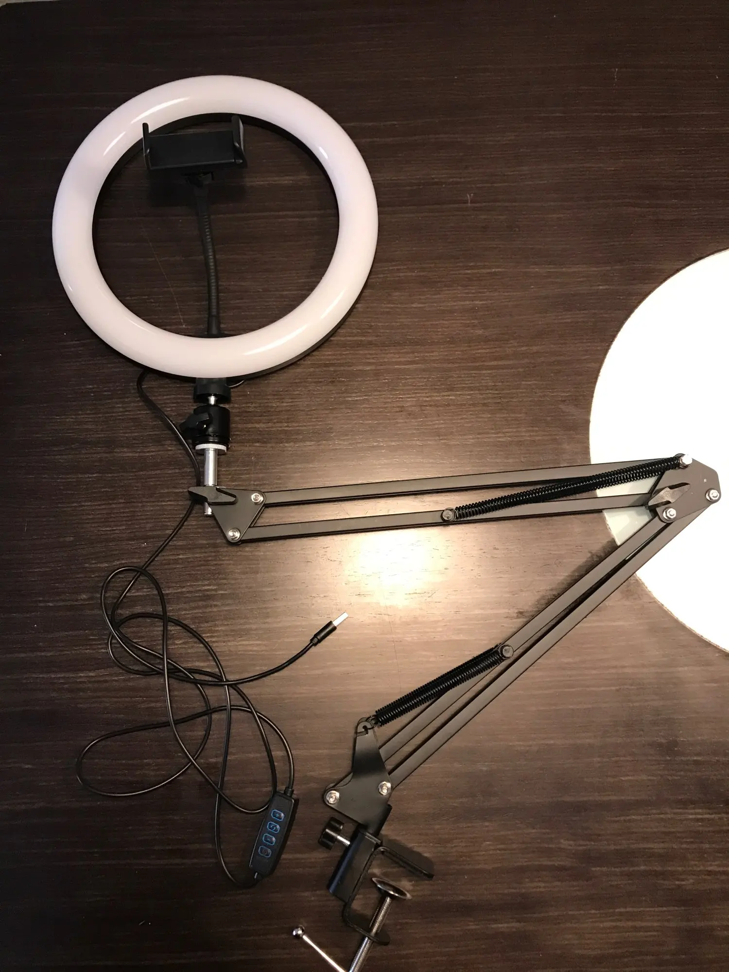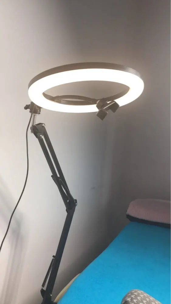 Отличная лампа и штатив для мастера маникюра , теперь можно записывать процесс и видео уроки, три режима света тёплый , холодный и нейтральный, сначала телефон провисал , но потом я догадалась подтянуть там штуку и все отлично !! Пришло быстрее даже чем обещали
