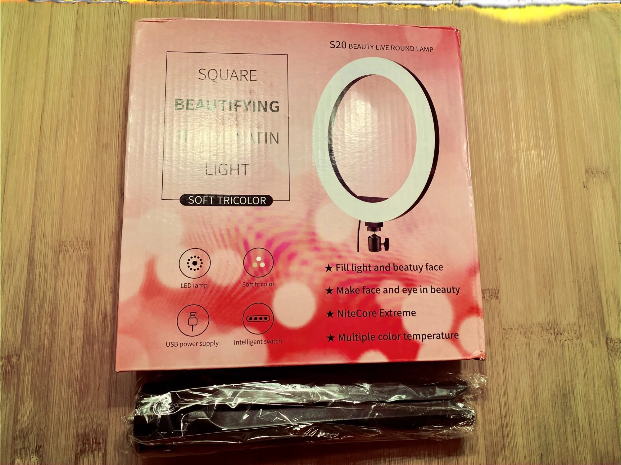 отличный кольцевой светильник,заказывала на подарок,думаю потом и для себя закажу,все работает,упакован не плохо