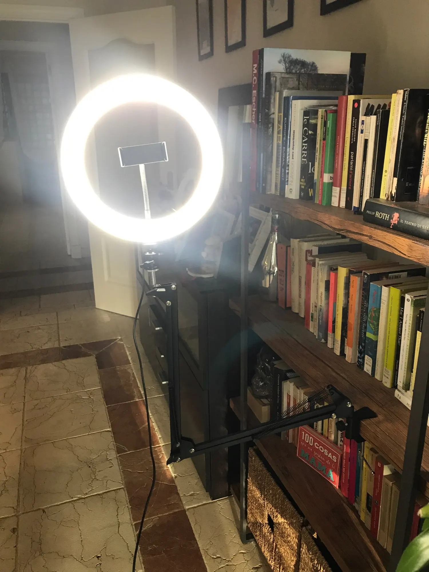 Я купил его в понедельник, 21 декабря, и 23 rd был уже дома (Испания). Как описано. Нога открывается довольно немного и очень устойчива. Он очень хорошо освещает (пока не плохо, но на данный момент очень доволен). Интенсивность регулируется в части 3 тонов, которые он имеет. Первая фотография без Liz on (мой мобильный телефон получает фотографии в целом довольно хорошие, и вот почему вы не цениете много, но в живую вы заметите разницу в оттенках и наличие его на номер).