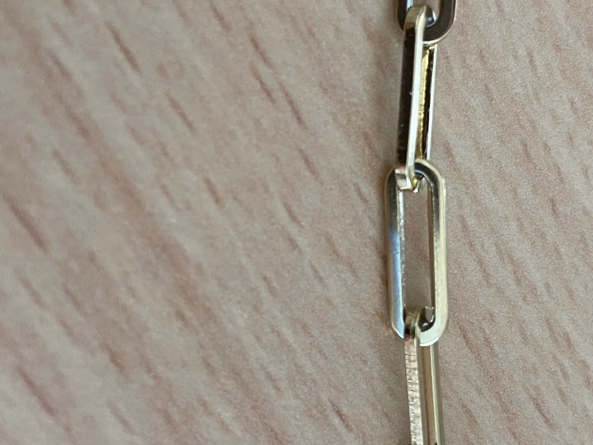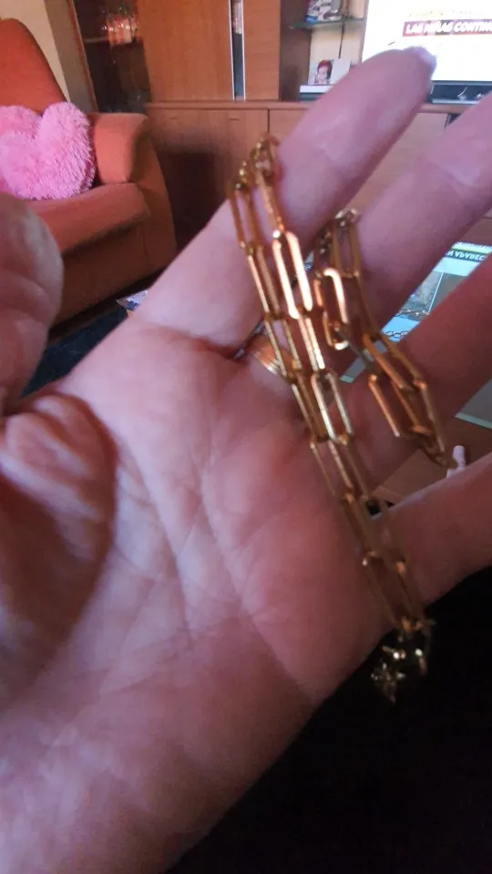 Esta muy padre, el material es bueno, no se ve ni se siente corriente, todo lo contrario. El tamaño de los eslabones es agradable a la vista, son del tamaño perfecto, se ven finos pero se puede apreciar su forma los recomiendo mucho aparte el envío fue rápido