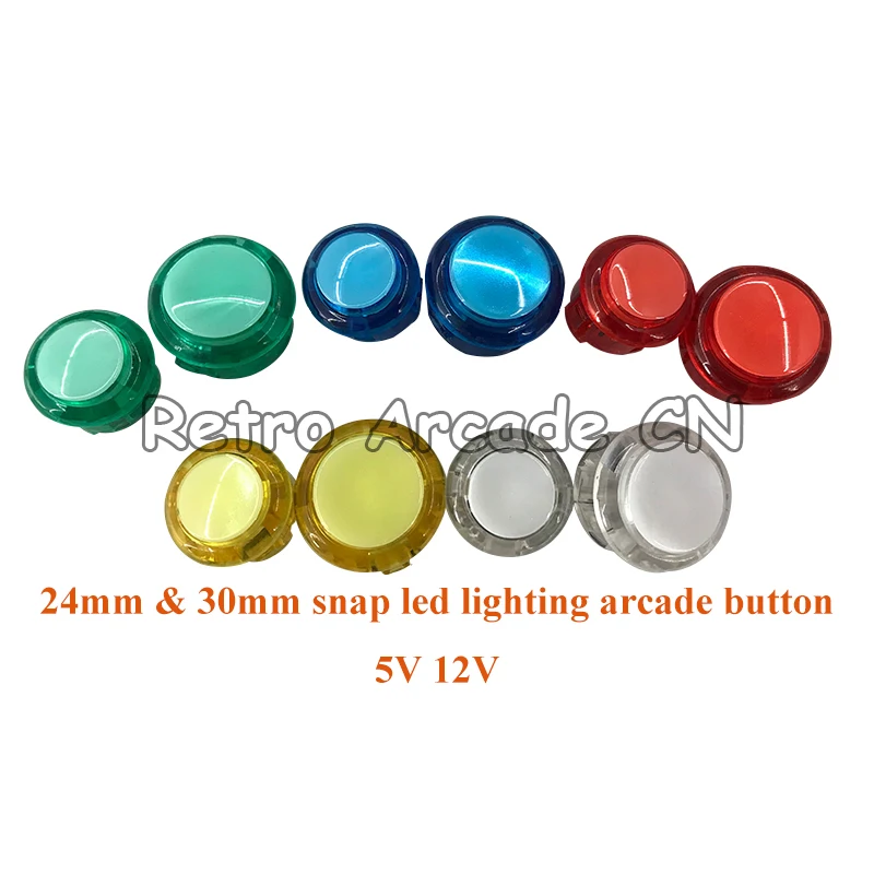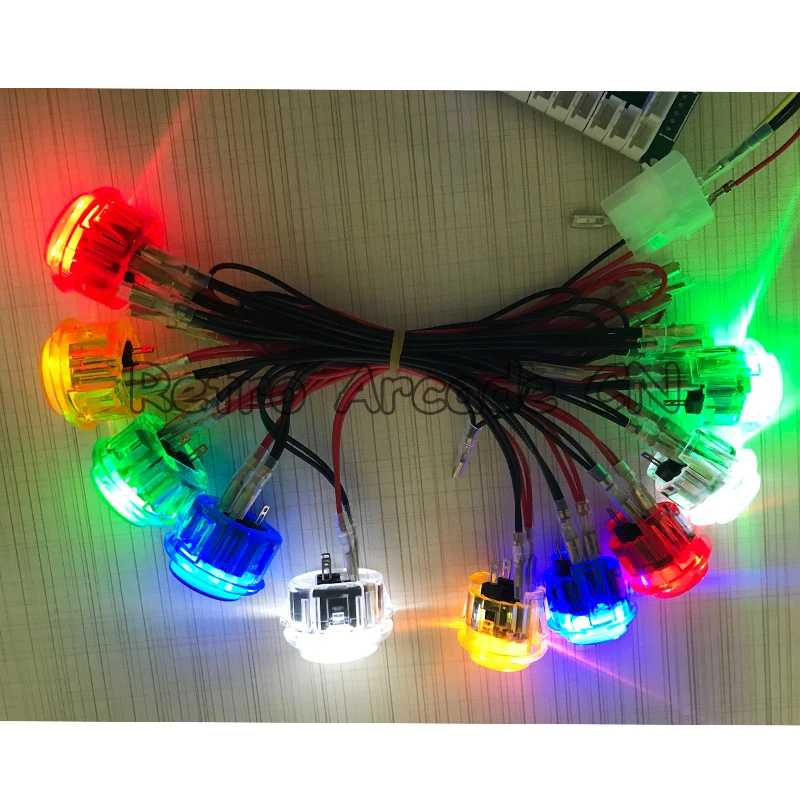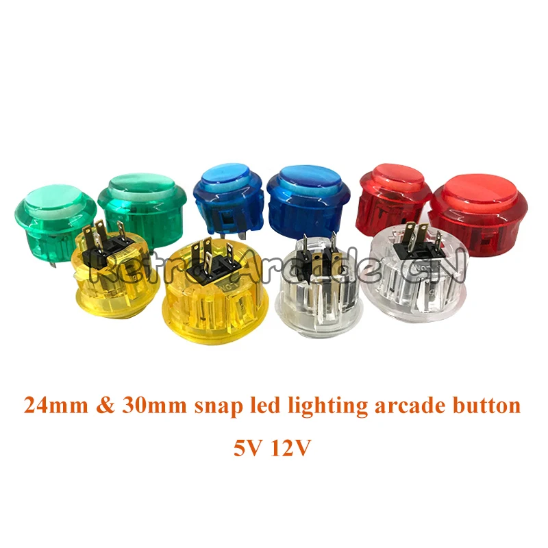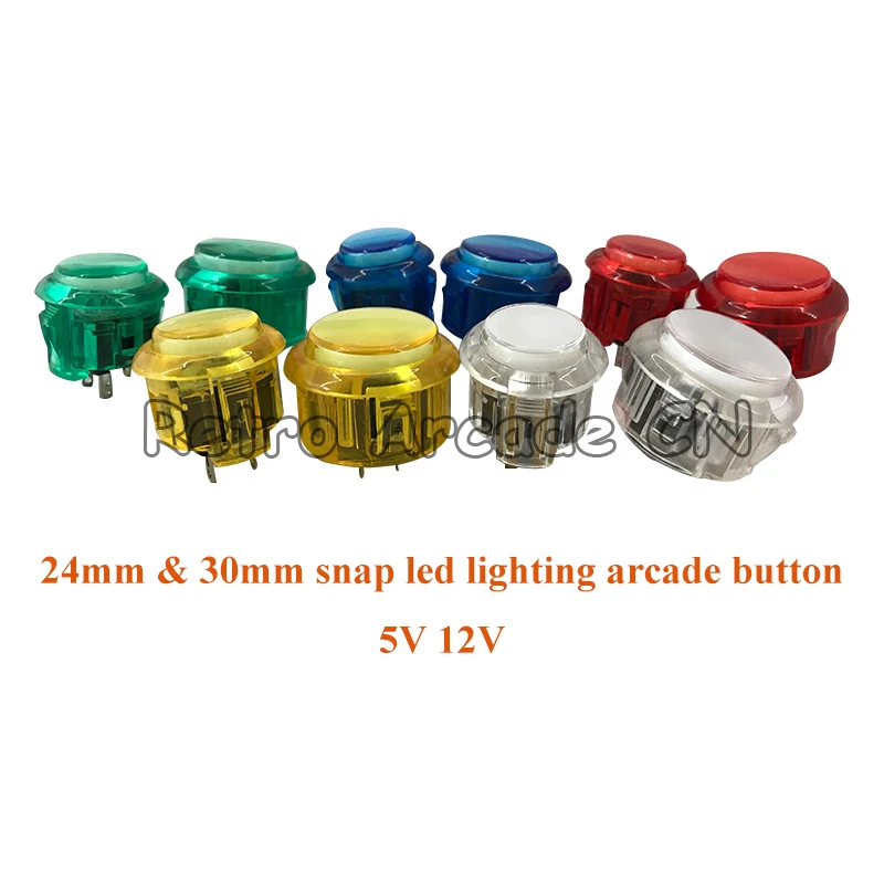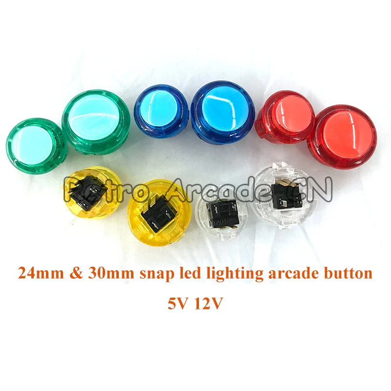 12 шт.лот 5 в 12 В аркадная Кнопка 24 мм 30 мм прозрачные светодиодные кнопки переключения для DIY Raspberry pi MAME PC