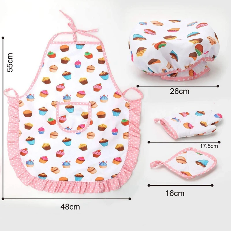 4 шт., Детский набор для готовки и выпечки, включает в себя фартук для маленьких девочек, шапочку шеф-повара, наряд для малышей