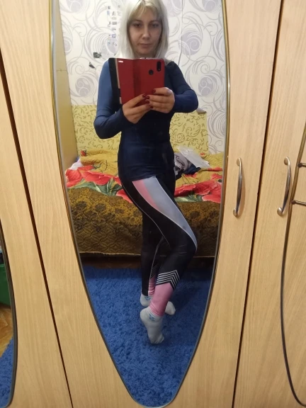 Внешний вид соответствует описанию, хорошие леггинсы, только в поясе широковаты. На параметры талия 78 бедра 103 подошли хорошо, но повторюсь, талия широкая. В размере L утонула (подошли по размеру женщине с 52 размером), а М сели нормально.