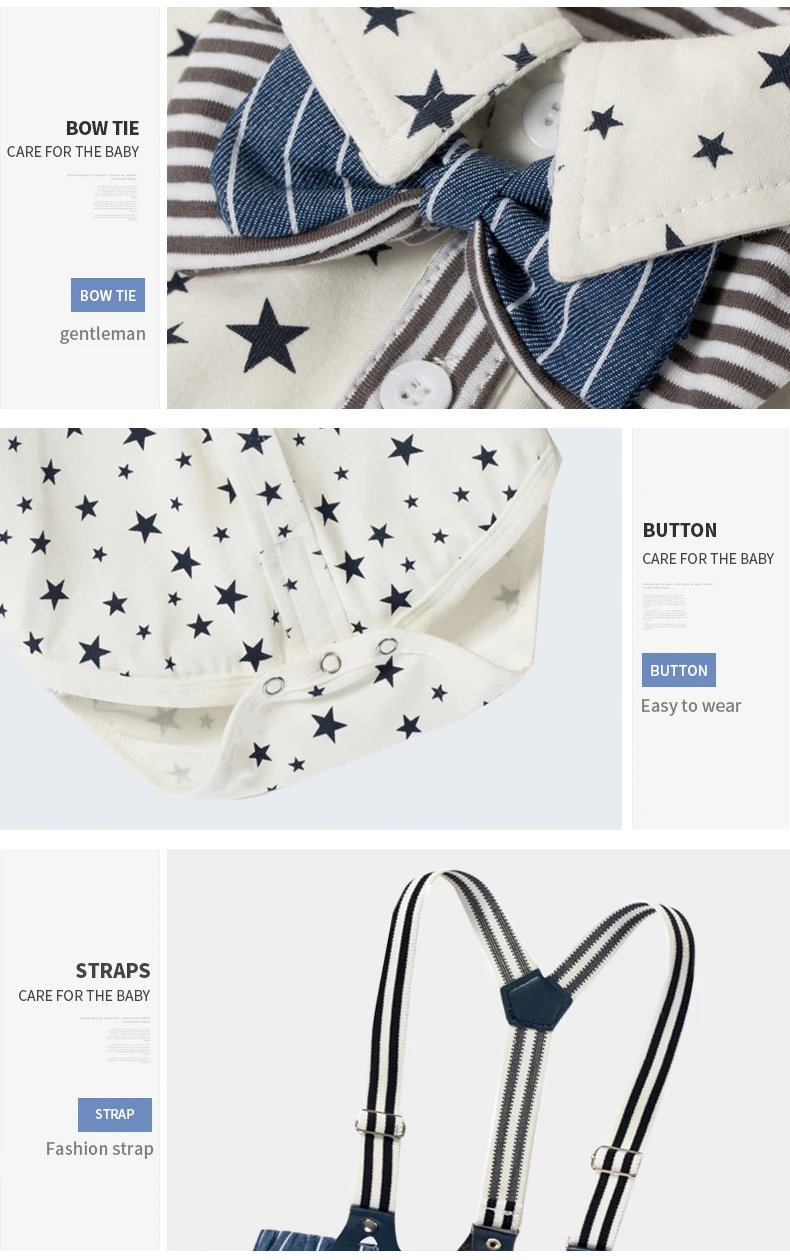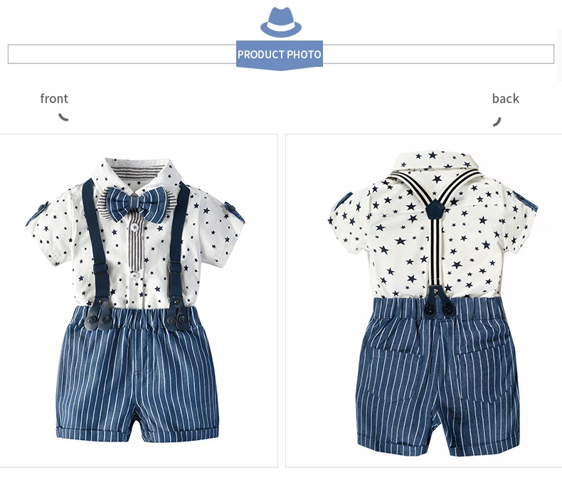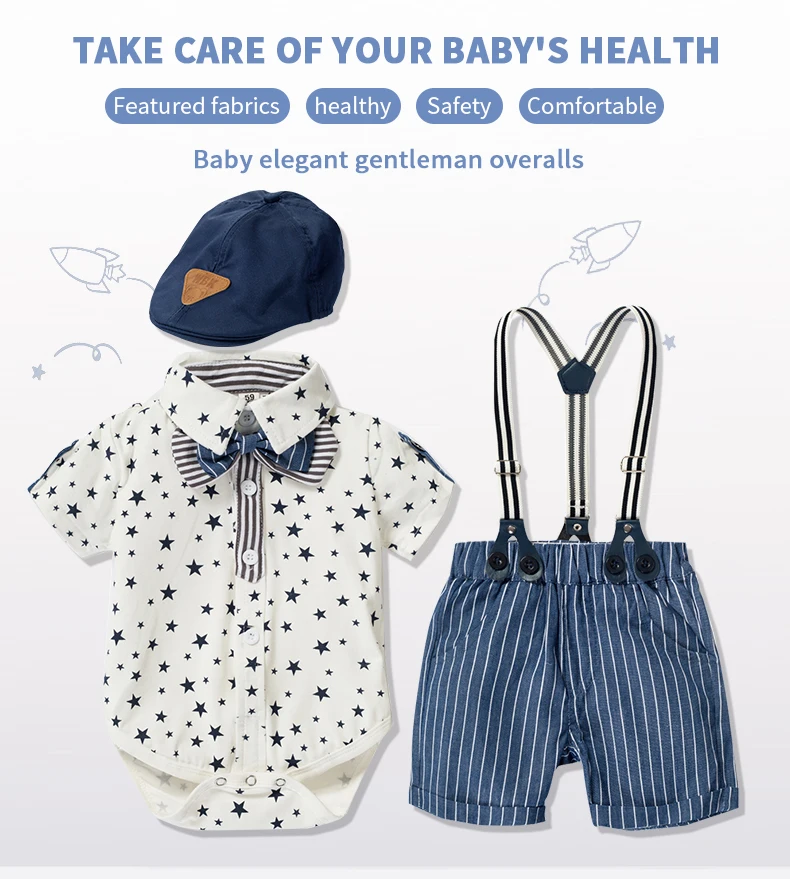 Комбинезон для новорожденных мальчиков, одежда, костюмы, официальный костюм для малышей, мальчиков, звезды, летний цвет, с шапочкой и галстуком-бабочкой, 0 - 24 месяца