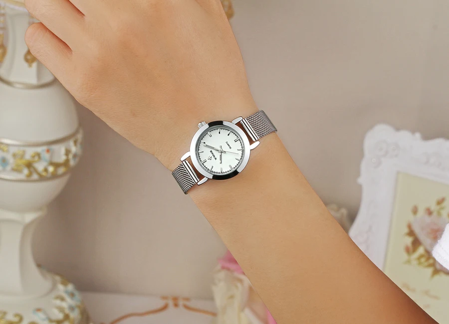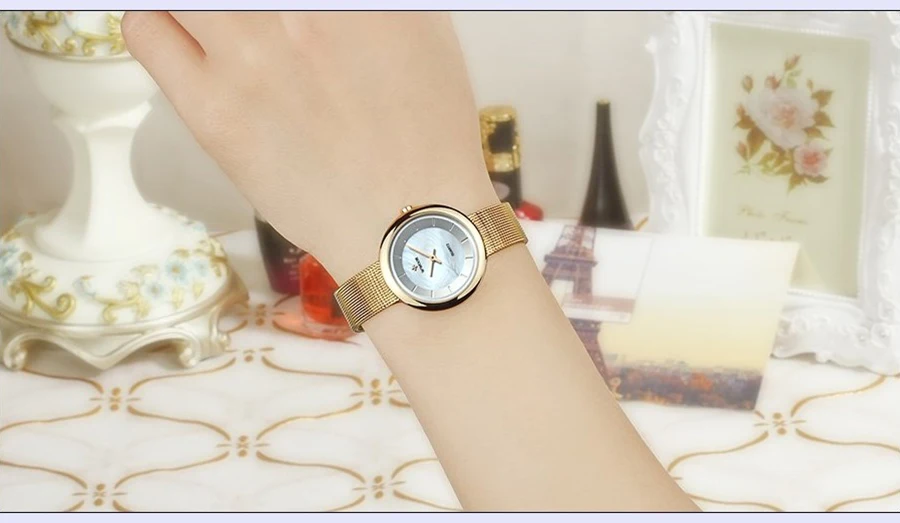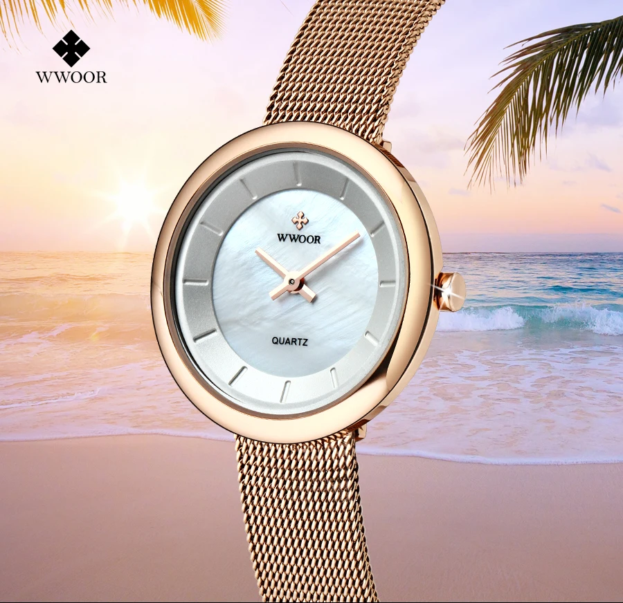 Часы наручные WWOOR женские маленькие, брендовые роскошные золотистые модные с сетчатым браслетом из нержавеющей стали, 2021