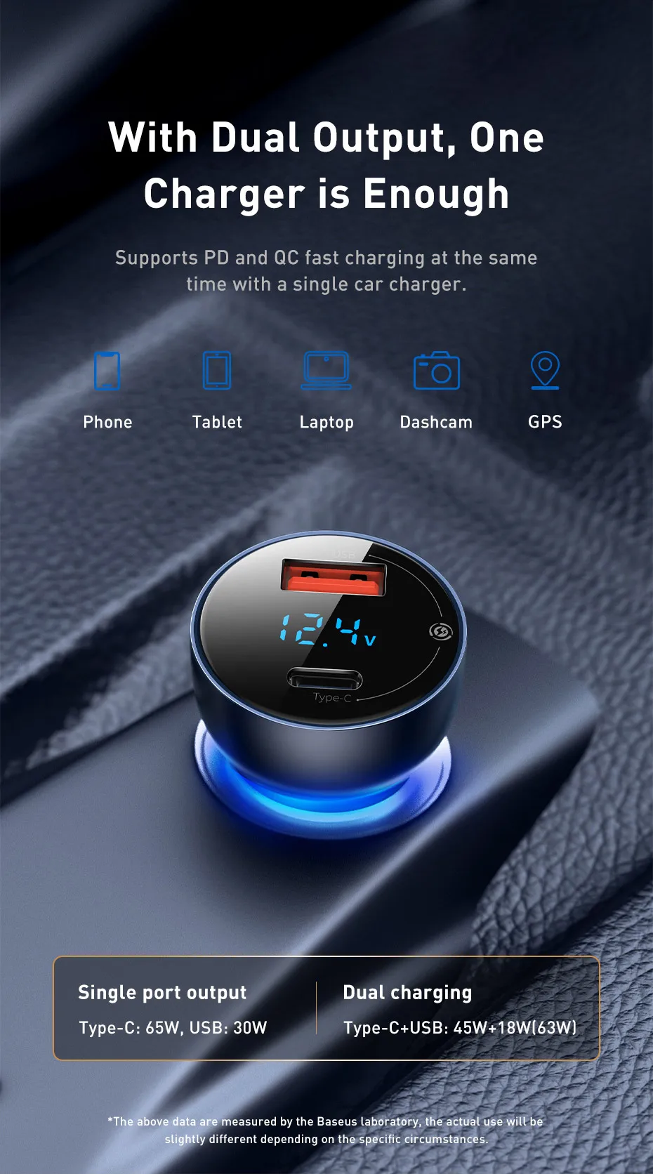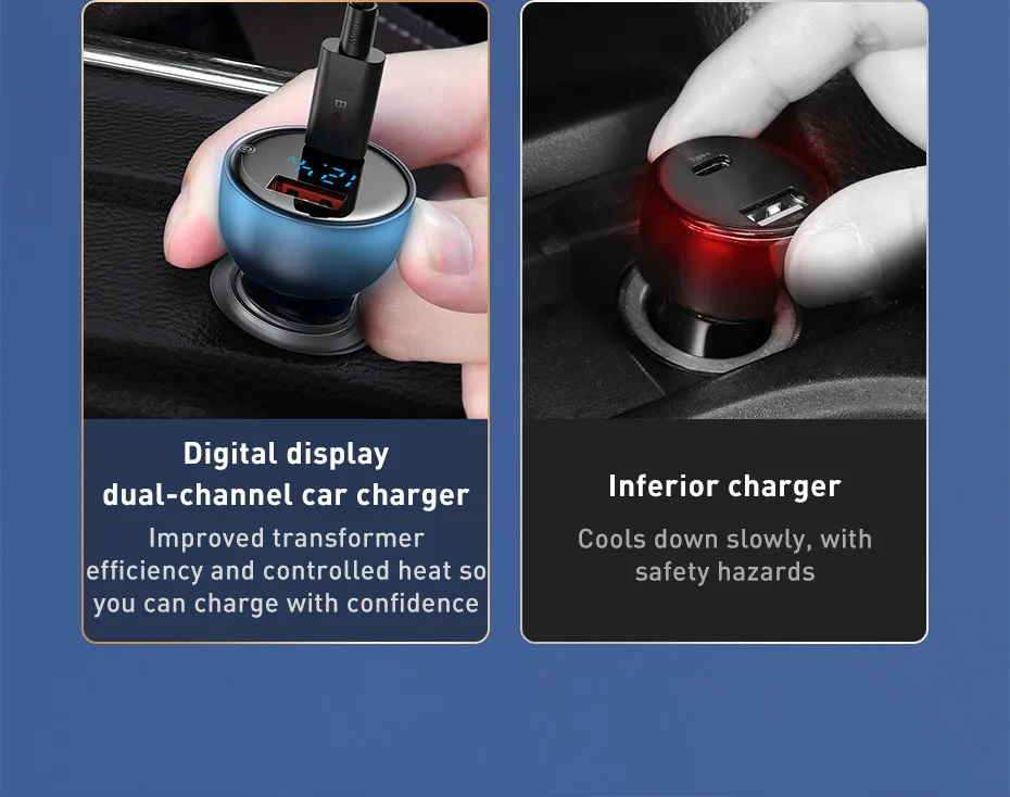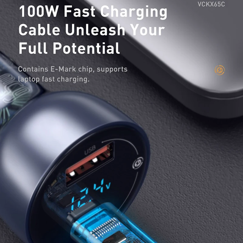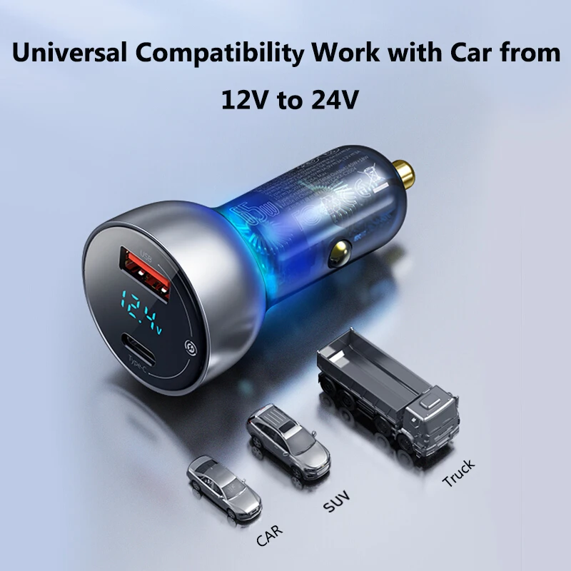 Автомобильное зарядное устройство Baseus 65 Вт, USB Type-C, двойная Быстрая зарядка для телефона, планшета, ноутбука, прикуривателя