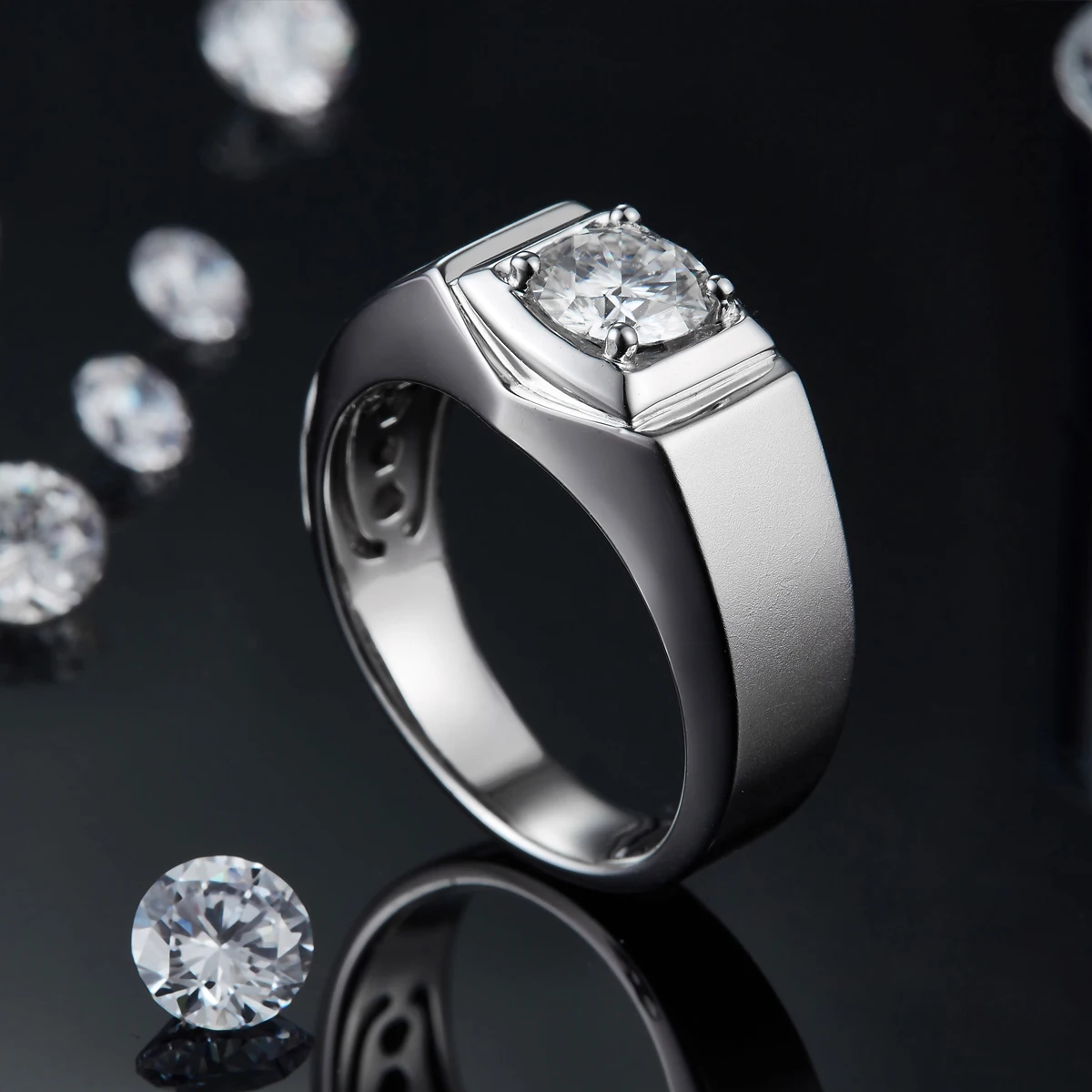 Мужское кольцо из серебра 6,5 пробы, с муассанитом, 1 карат, D, 925 пробы мм
